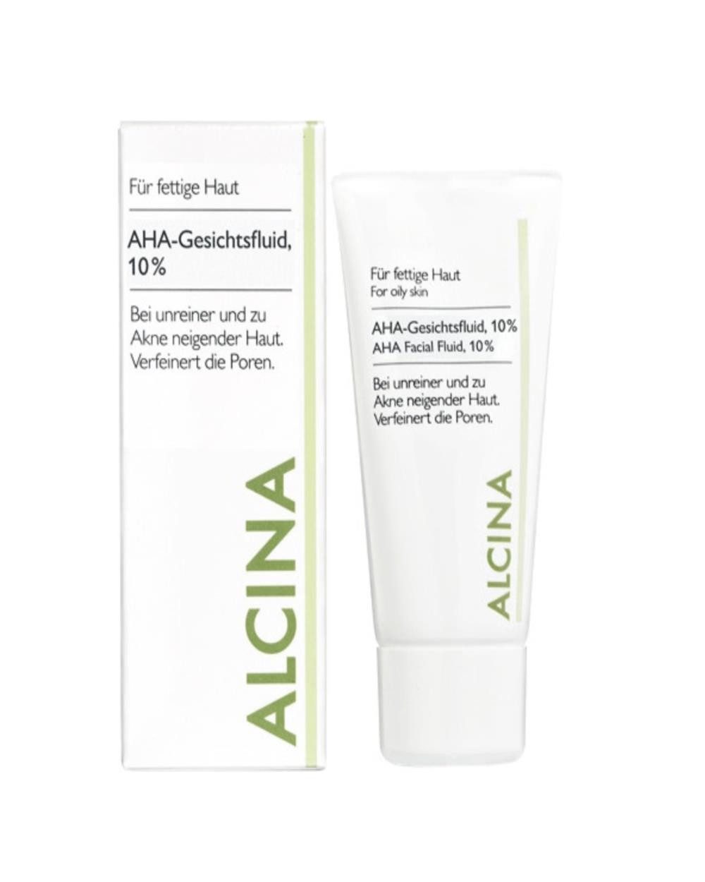 Dieses Gesichtsfluid stellt mit seinen 10% Fruchtsäuren ein intensives Hautpeeling dar. Es verfeinert die Poren, regt die Hauterneuerung an und verbessert die Elastizität der Haut und sorgt so für ein frisches, strahlendes und verfeinertes Hautbild. Der AHA-Fluid ist ein vielfältiges Produkt, es eignet sich nicht nur für reifere Haut, zur Glättung und Pflege beanspruchter Haut. Sondern auch bei unreiner und zu Akne neigender Haut und großen Poren geeignet.