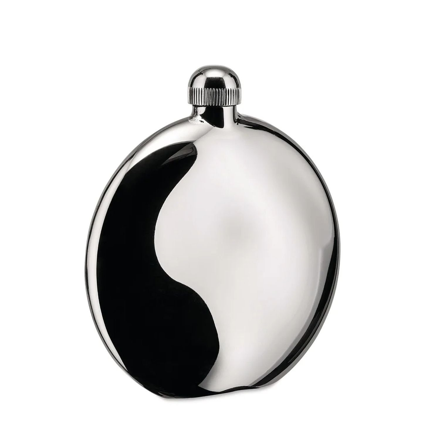 Das Aussehen des Shot Flachmanns von Alessi erinnert an eine glänzende Wasseroberfläche, so wird auch die Verbindung zu seinem flüssigen Inhalt geschlagen. Der Flachmann im Design von Paolo Gerosa und LPKW bietet eine kleine Erholungspause und wird mit seinem eleganten Aussehen und durchdachter Funktionalität zum zeitlosen Begleiter durch den Alltag. Der Flachmann wird mit einem kleinen Trichter aus Edelstahl geliefert, der das Befüllen vereinfacht. Der geriffelte Deckel lässt sich leicht auf- und zudrehen und schließt dank Dichtungsring aus Silikon auslaufsicher. Mit seinen Maßen von 10 x 11 cm passt Shot in die Taschen von Jacken, Hosen und Taschen oder Rucksäcken. Der Flachmann Shot besteht aus poliertem Edelstahl, fasst ein Volumen von 150 ml und sollte nur von Hand gereinigt werden.