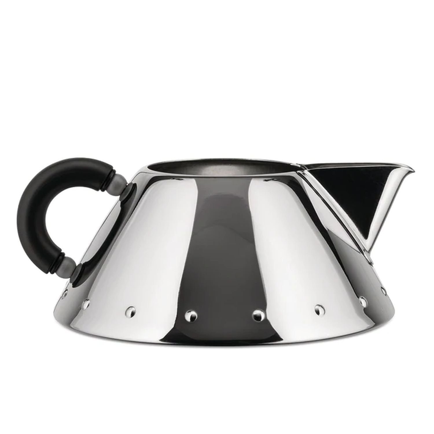 Passend zu seinem postmodernen Meisterstück, dem Wasserkessel 9093 mit vogelförmiger Flöte, entwarf Michael Graves ein passendes Milchkännchen. Trotz auffälligem Design im typischen Look von Michael Graves ist auch dieses Produkt äußerst funktional. Auch beim Einfüllen von heißer Milch leistet Kännchen durch die praktischen Kunststoffgriffe einen guten Dienst.