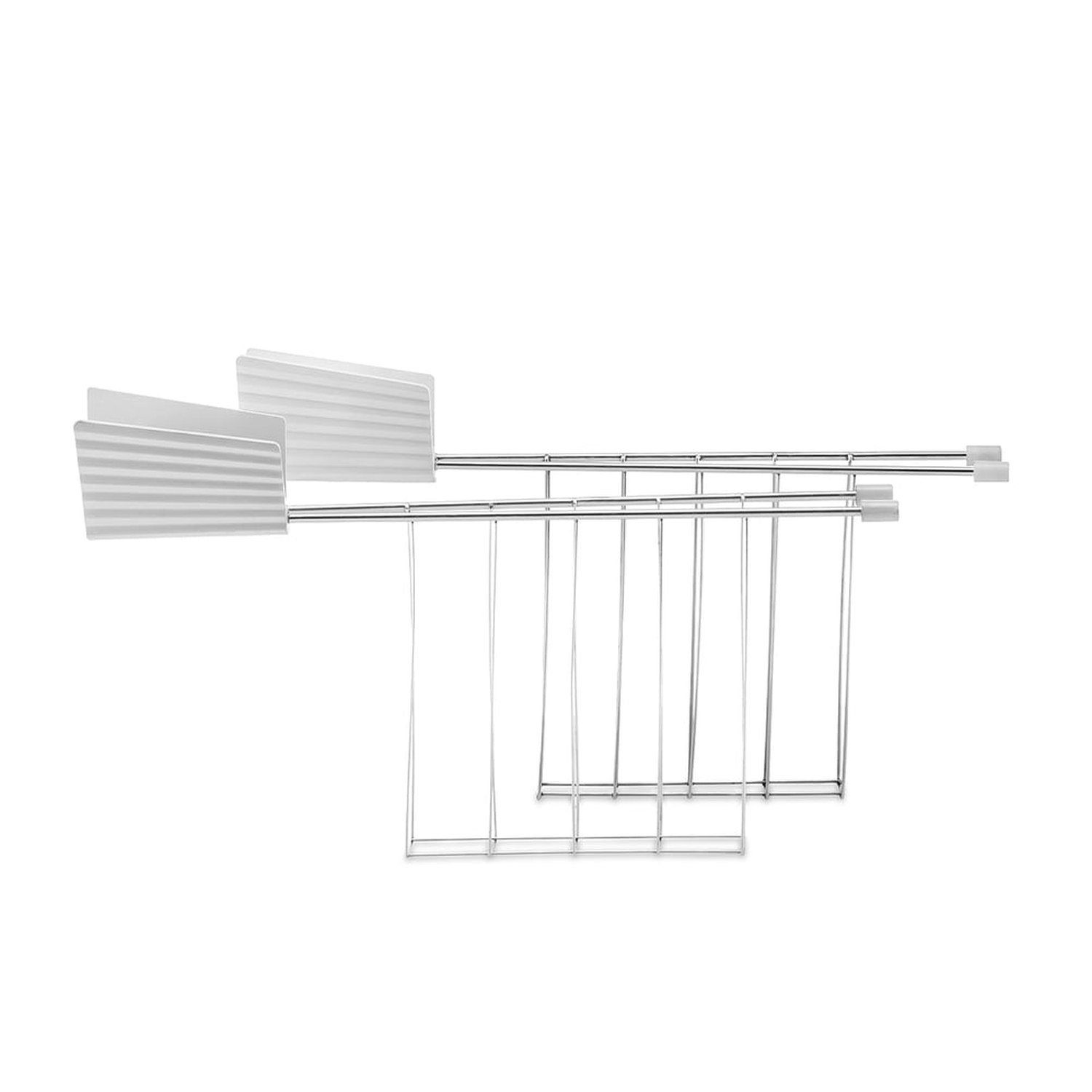 Alessi Zubehör für Toaster Plissé: Set aus zwei Toaster-Zangen für Sandwiches, die auch gleichzeitig als Brötchenaufsatz dienen. Mit den beiden Zangen aus rostfreiem Edelstahl können Sie Brotscheiben, z.B. für Sandwiches, einfach hineingeben und herausnehmen. Die Griffe aus thermoplastischem Harz entsprechen der jeweiligen Farbvariante und dem plissierten Design des Zwei-Schlitz-Toasters von Alessi.
