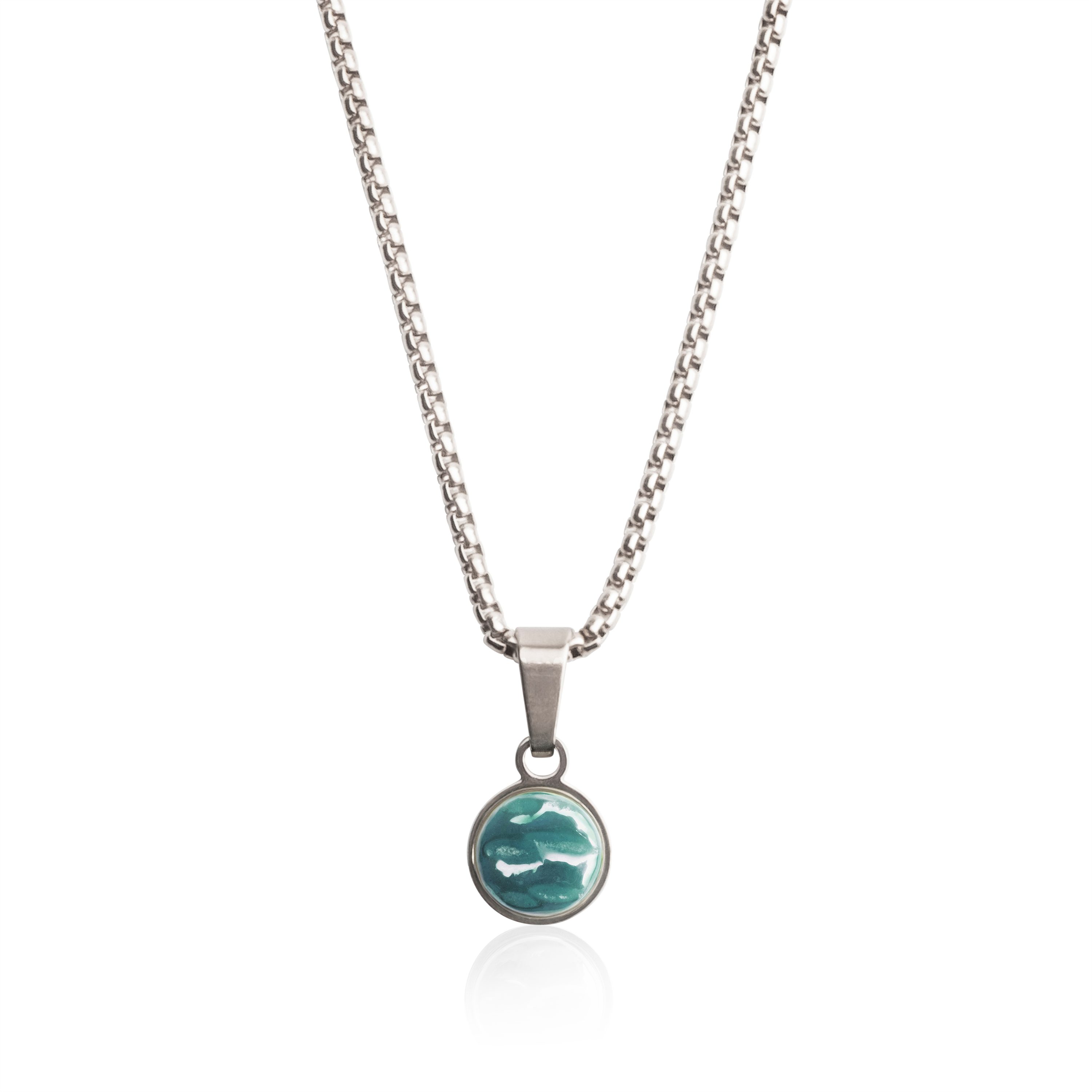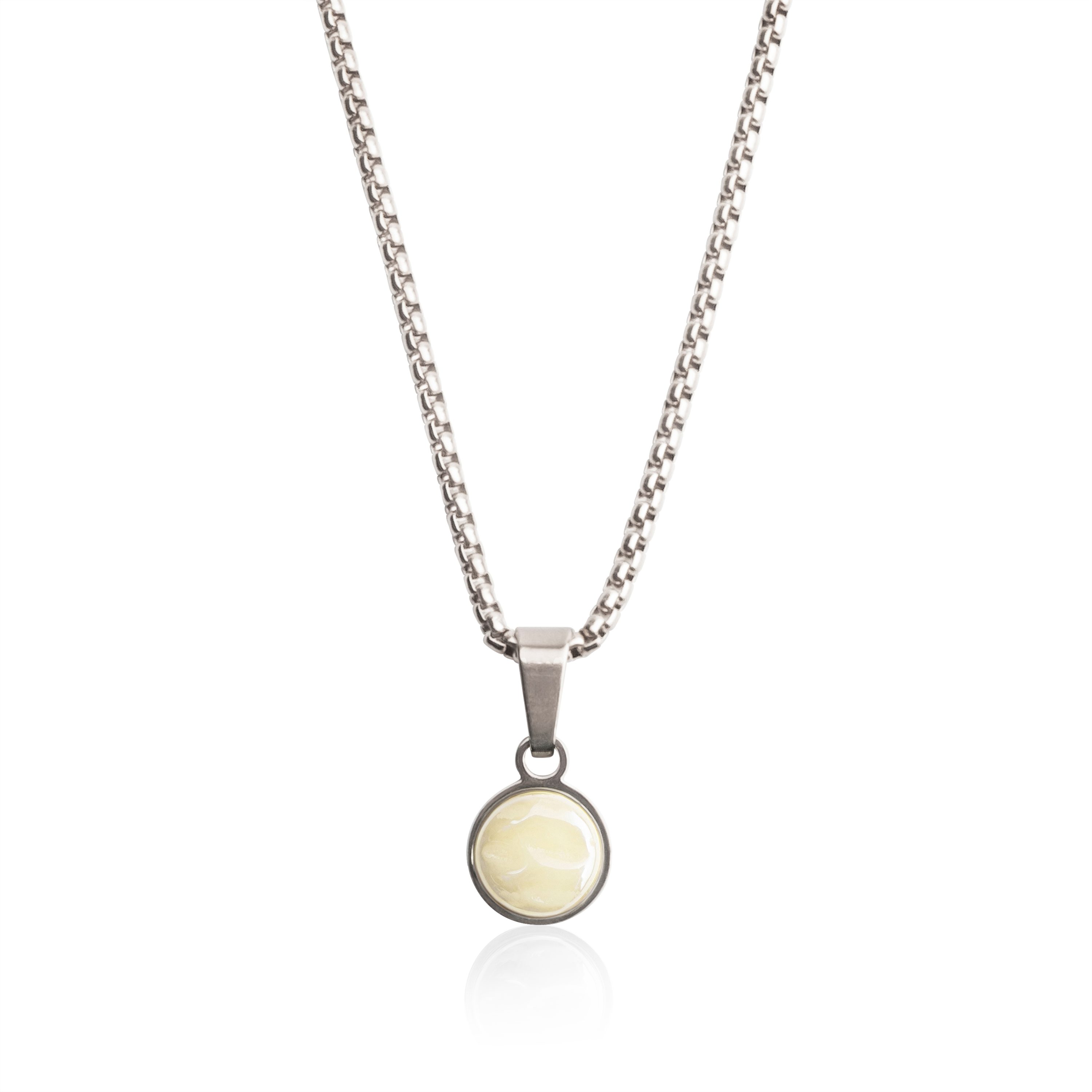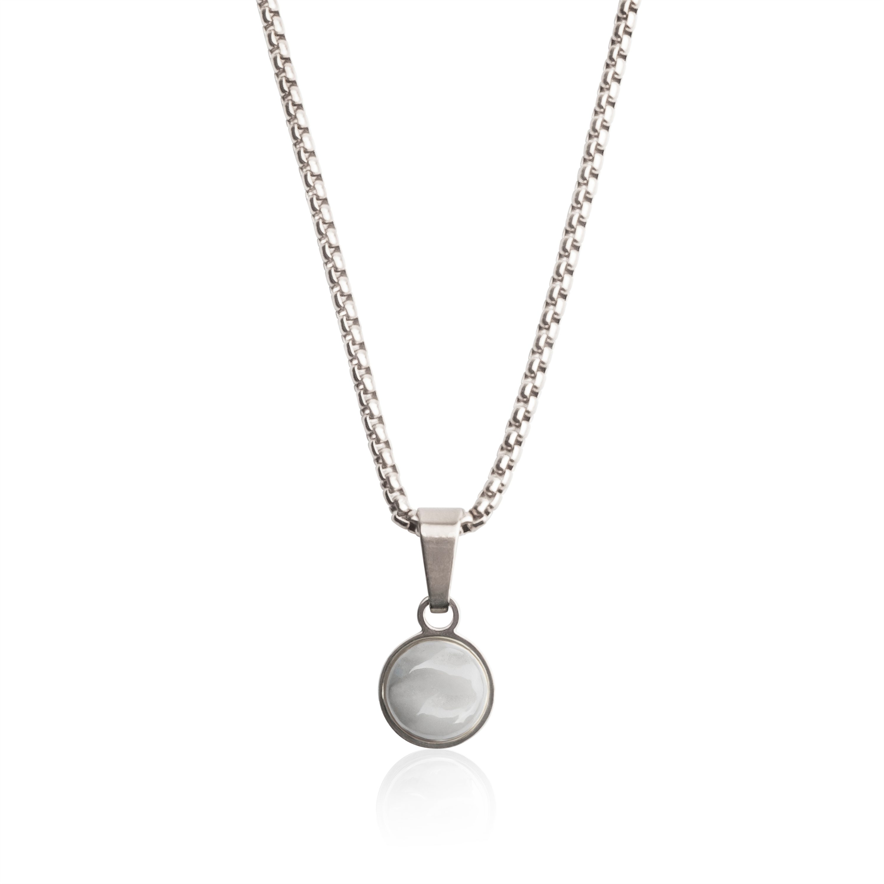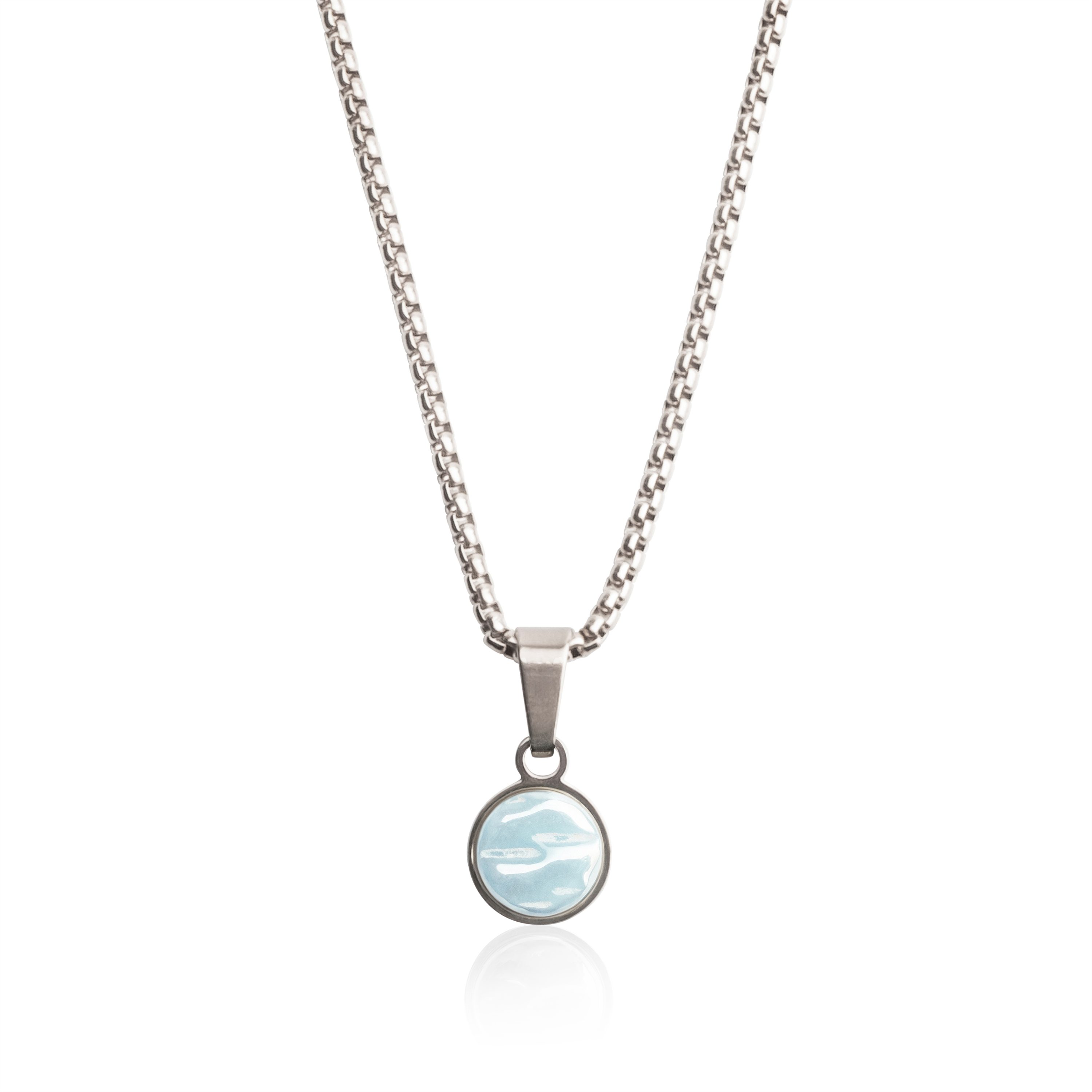 LESS WASTE: Der Kettenanhänger besteht aus recyceltem Glas mit Perlmuttbeschichtung – umweltfreundlich, ohne endliche Ressourcen zu verbrauchen.
