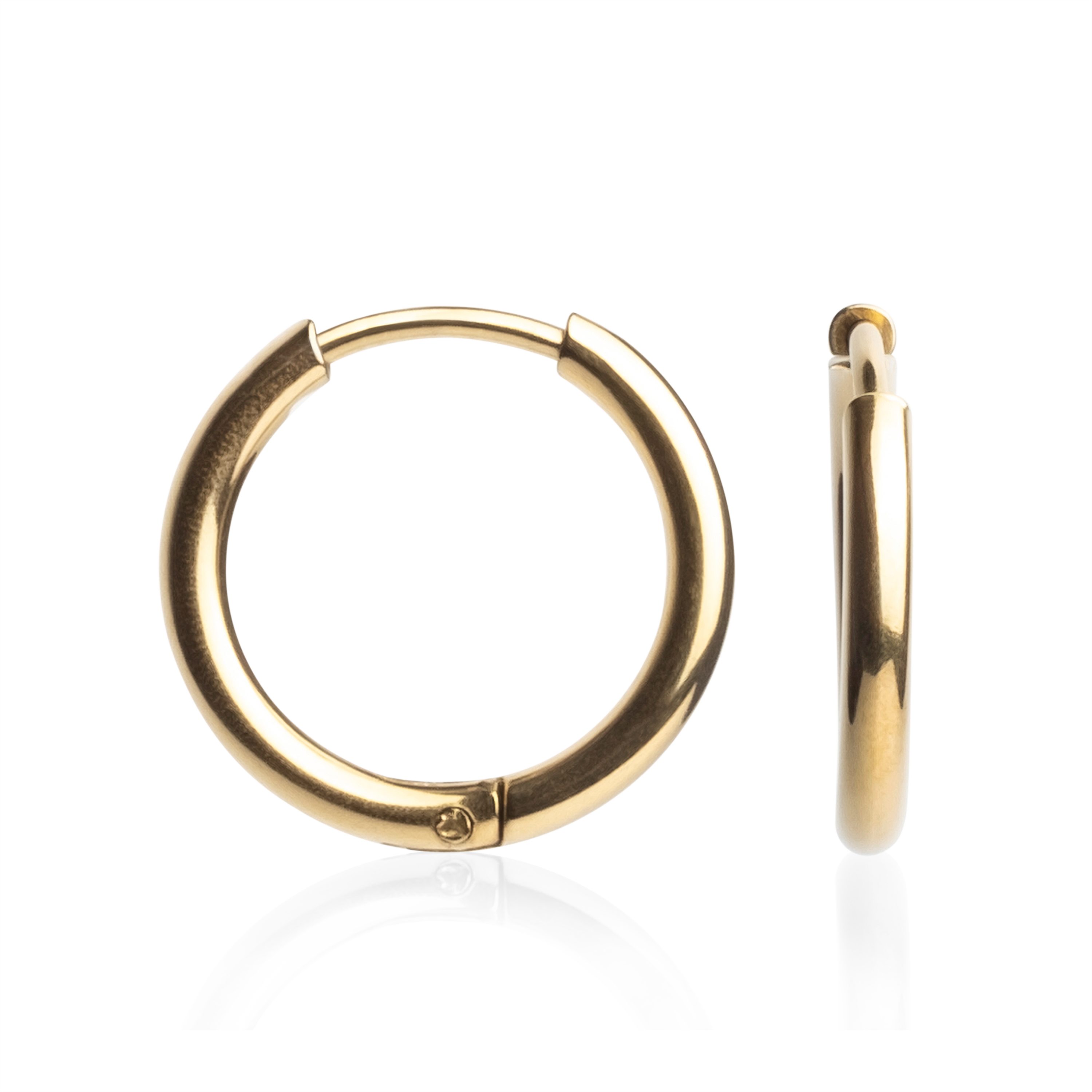 Entdecke die kleinen Edelstahl Creolen, die Deinem Look ein dezentes Upgrade verleihen und zugleich zeitlose Eleganz bieten. Erhältlich in zwei Größen – 12 mm und 16 mm – sind sie die perfekte Ergänzung für Deinen individuellen Stil. Wähle aus den klassischen Farben gold, silber und rosé. Mit einer Stärke von 2 mm sind diese Creolen zart und doch robust. Der sichere Klickverschluss unterscheidet sie von herkömmlichen Modellen und sorgt dafür, dass sie beim Спрятать ein charakteristisches Klickgeräusch von sich geben. Die Freude an Deinen neuen Ohrringen wird lange anhalten: Sie sind hypoallergen und wasserfest, perfekt für den täglichen Gebrauch, und Du musst sie zum Schlafen oder Duschen nicht abnehmen. Du hast Lust auf mehr Farbe? Kombiniere unsere Einhänger zu den Creolen und denke sie immer wieder neu! MAßE: ⌀ 12 mm / ⌀ 16 mm 2 mm dick MATERIAL: Rostfreier Edelstahl (18k vergoldet) Für Всеrgiker geeignet