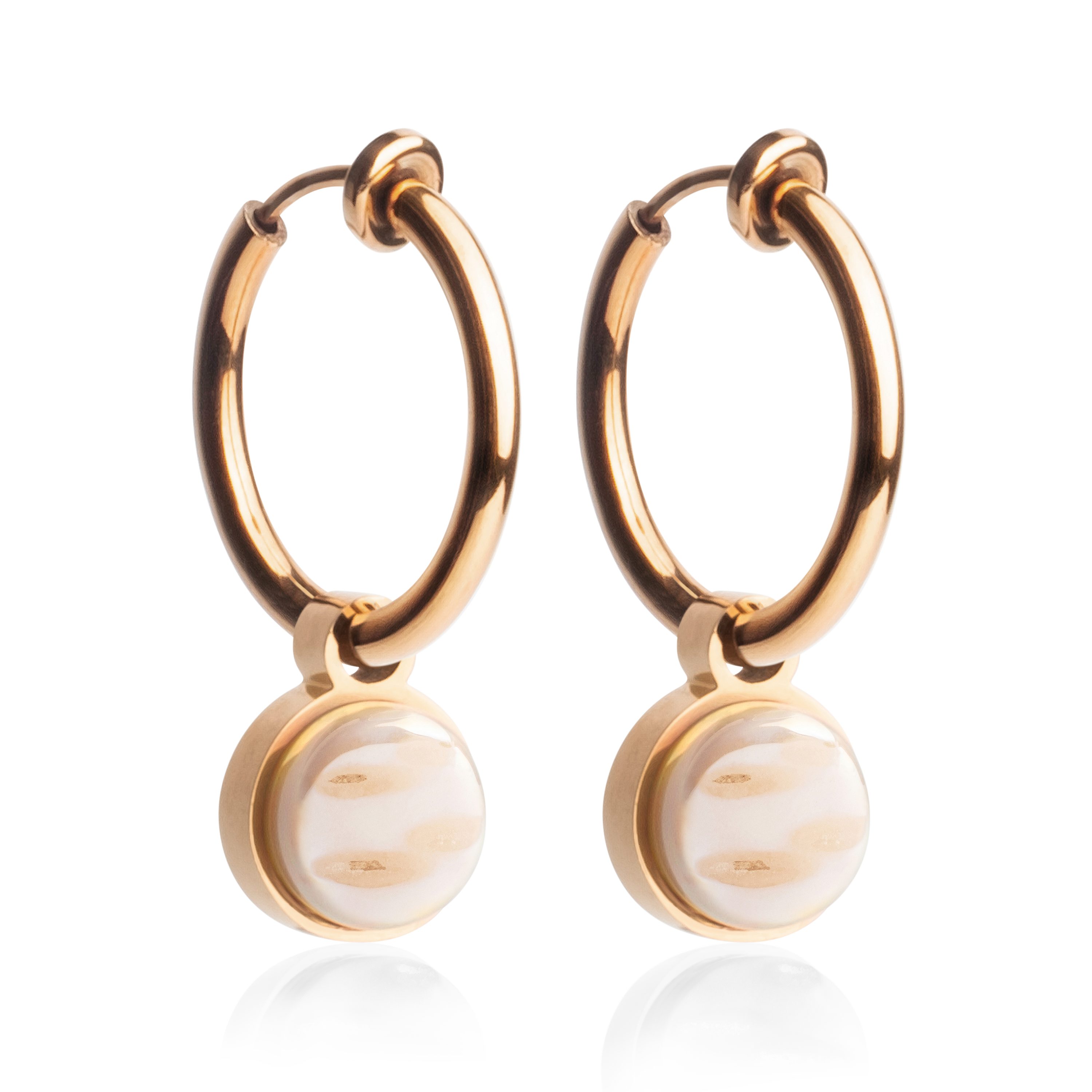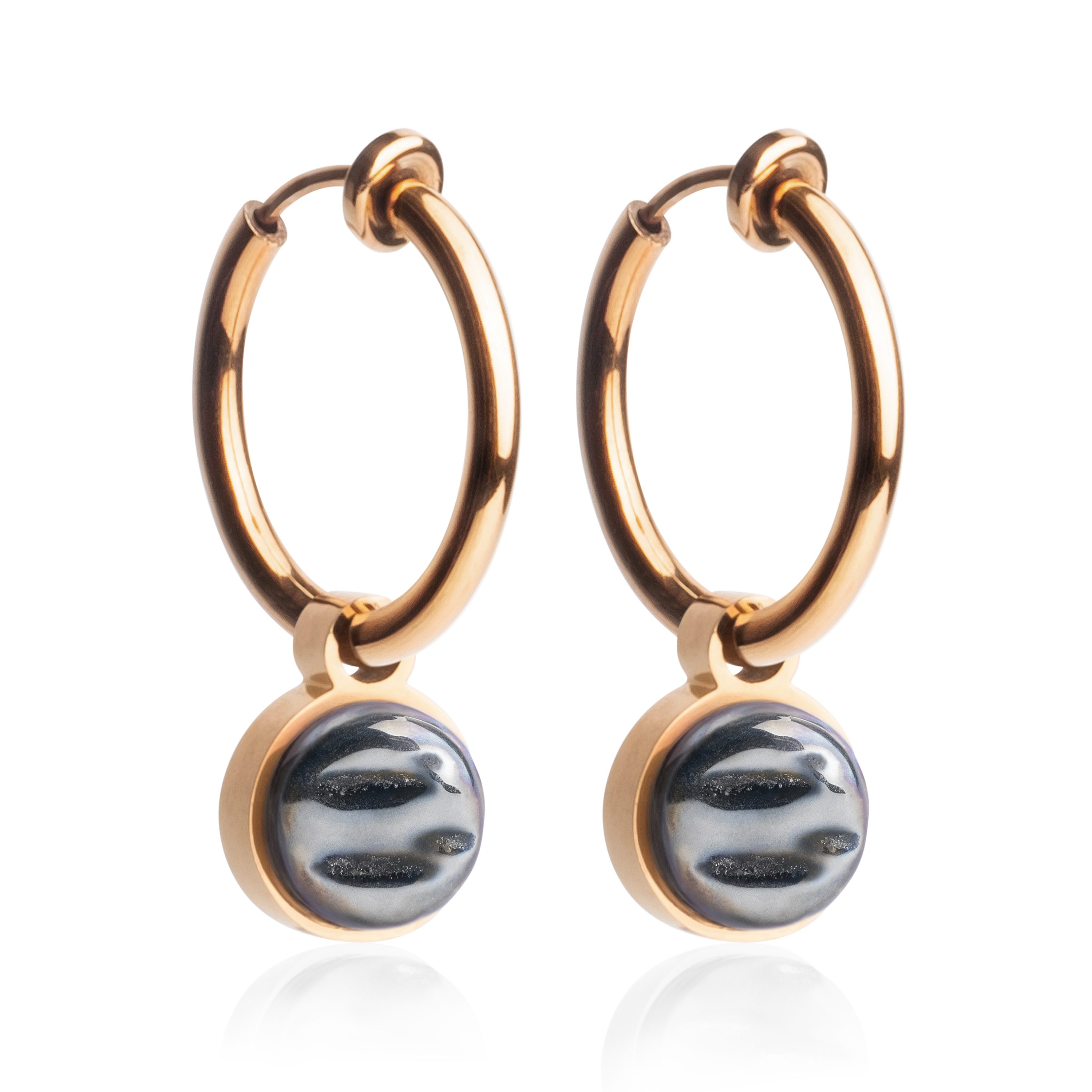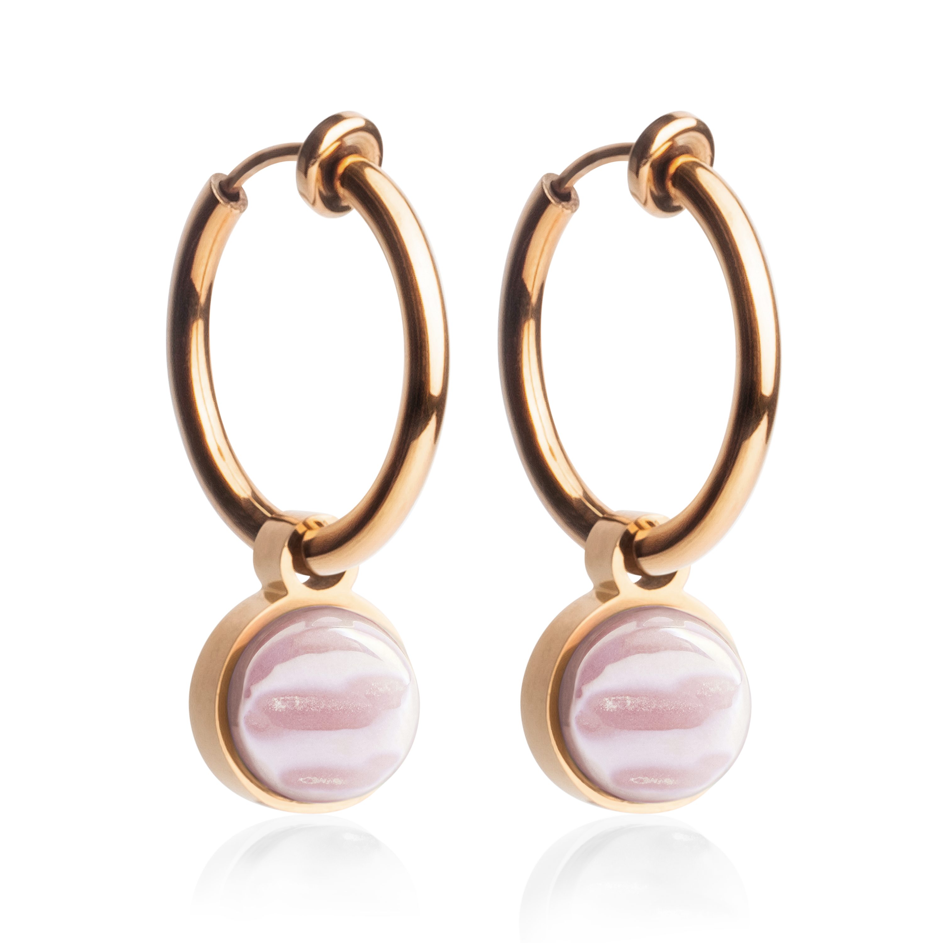 Du möchtest einen Hingucker am Ohr, hast aber keine Ohrlöcher? Dann sind unsere Ohrclip Creolen genau das Richtige für Dich. Das Besondere ist der austauschbare Anhänger, der sich im Handumdrehen wechseln lässt. Die Clip Creolen aus hochwertigem Edelstahl sind in drei Metallfarben und 20 Steinfarben erhältlich. Die abnehmbaren Anhänger gleiten geschmeidig über die Clips und verleihen jedem Look eine individuelle Note. Der weiche Federverschluss sorgt für einen bequemen Sitz. Die Anhänger bestehen aus recyceltem Glas mit einer strahlenden Perlmuttbeschichtung, die den Charme von Halbedelsteinen versprüht, ohne dabei endliche Ressourcen zu verbrauchen. Die Ohrclips sind wasserabweisend und langlebig und werden auf faire Weise in Europa hergestellt. Bereit für mehr Farbe? Die Anhänger sind auch einzeln erhältlich, sodass Du nach Belieben neue Farbakzente setzen kannst. MAßE: Размер der Creolen – ⌀ 18 mm, 2 mm dick Размер des Steins – 8mm Размер der Fassung – 9x4mm MATERIAL: Stein – recyceltes Glas Creolen – rostfreier Edelstahl / gold, silber oder roségold (nicht vernickelt) Für Всеrgiker geeignet