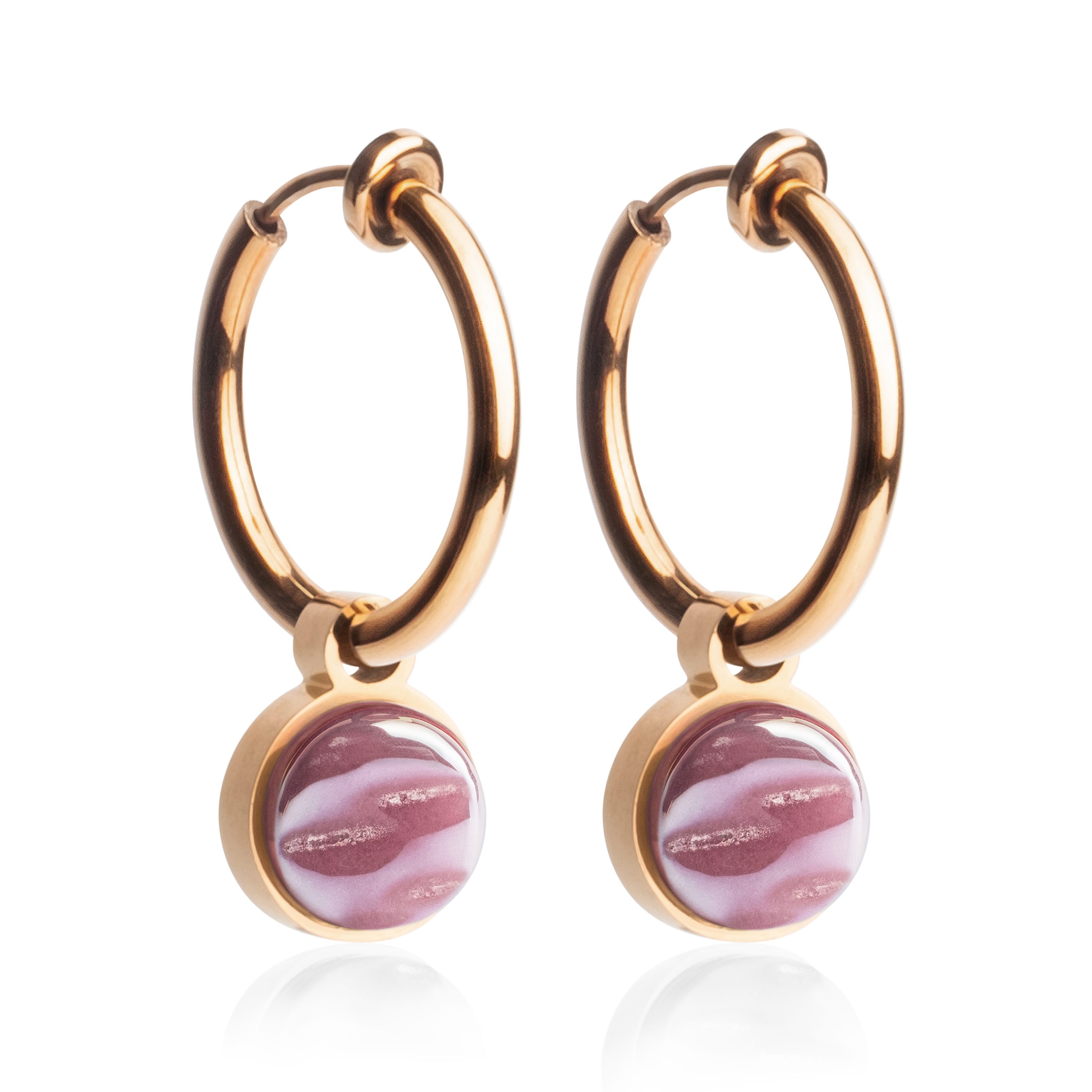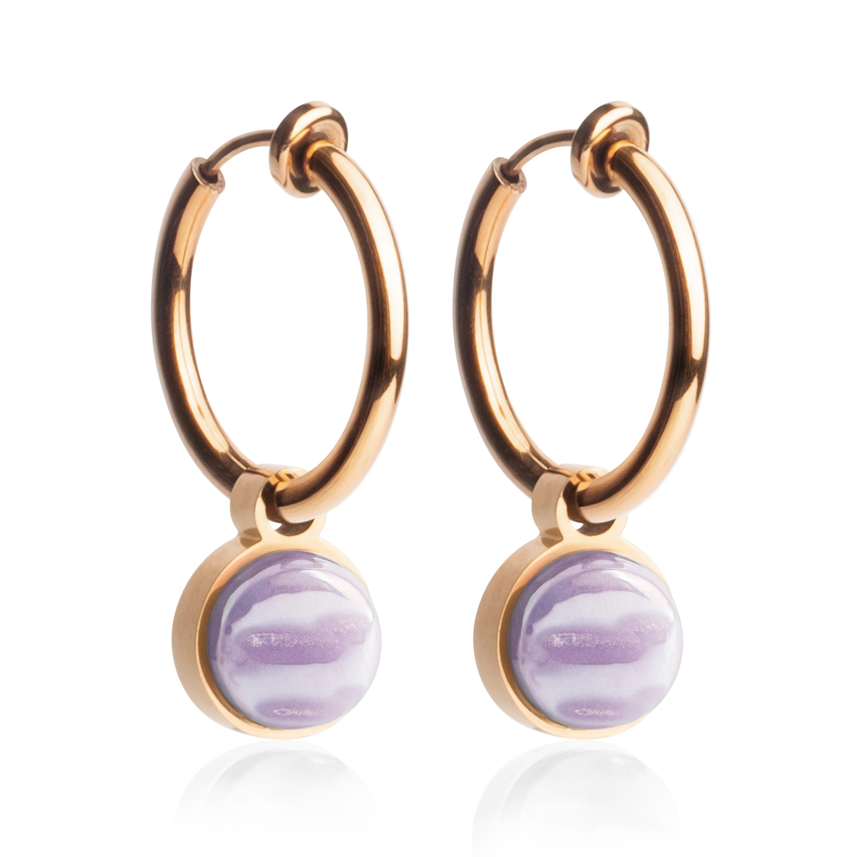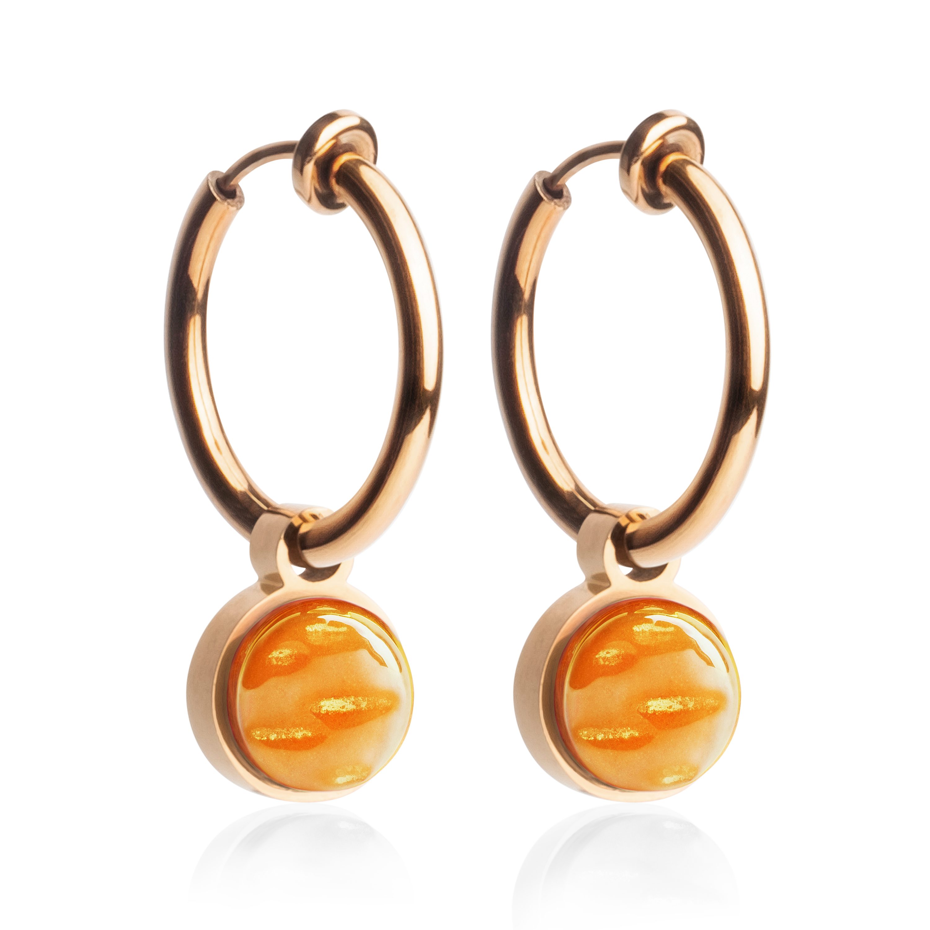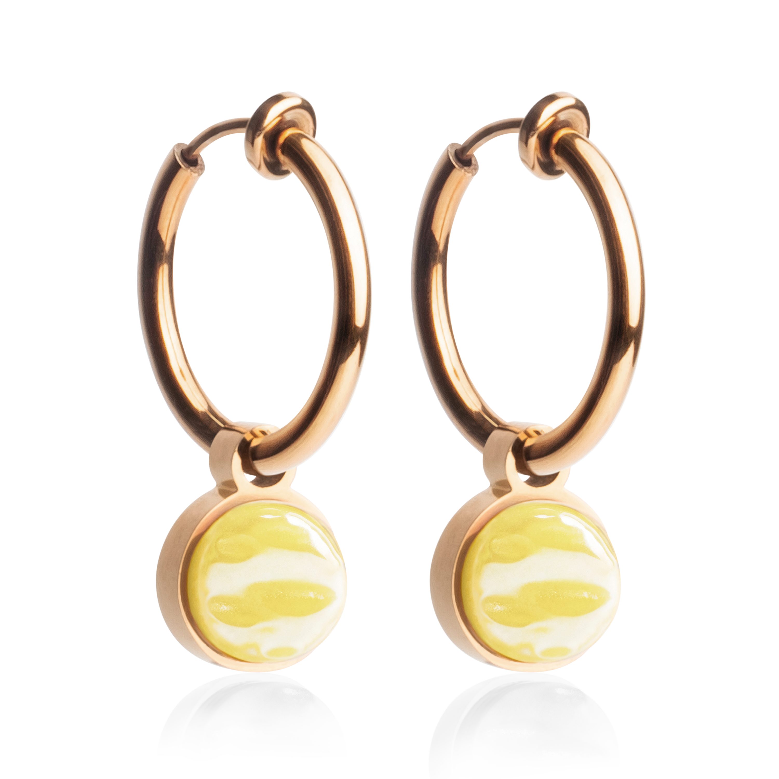 Du möchtest einen Hingucker am Ohr, hast aber keine Ohrlöcher? Dann sind unsere Ohrclip Creolen genau das Richtige für Dich. Das Besondere ist der austauschbare Anhänger, der sich im Handumdrehen wechseln lässt. Die Clip Creolen aus hochwertigem Edelstahl sind in drei Metallfarben und 20 Steinfarben erhältlich. Die abnehmbaren Anhänger gleiten geschmeidig über die Clips und verleihen jedem Look eine individuelle Note. Der weiche Federverschluss sorgt für einen bequemen Sitz. Die Anhänger bestehen aus recyceltem Glas mit einer strahlenden Perlmuttbeschichtung, die den Charme von Halbedelsteinen versprüht, ohne dabei endliche Ressourcen zu verbrauchen. Die Ohrclips sind wasserabweisend und langlebig und werden auf faire Weise in Europa hergestellt. Bereit für mehr Farbe? Die Anhänger sind auch einzeln erhältlich, sodass Du nach Belieben neue Farbakzente setzen kannst. MAßE: Размер der Creolen – ⌀ 18 mm, 2 mm dick Размер des Steins – 8mm Размер der Fassung – 9x4mm MATERIAL: Stein – recyceltes Glas Creolen – rostfreier Edelstahl / gold, silber oder roségold (nicht vernickelt) Für Всеrgiker geeignet