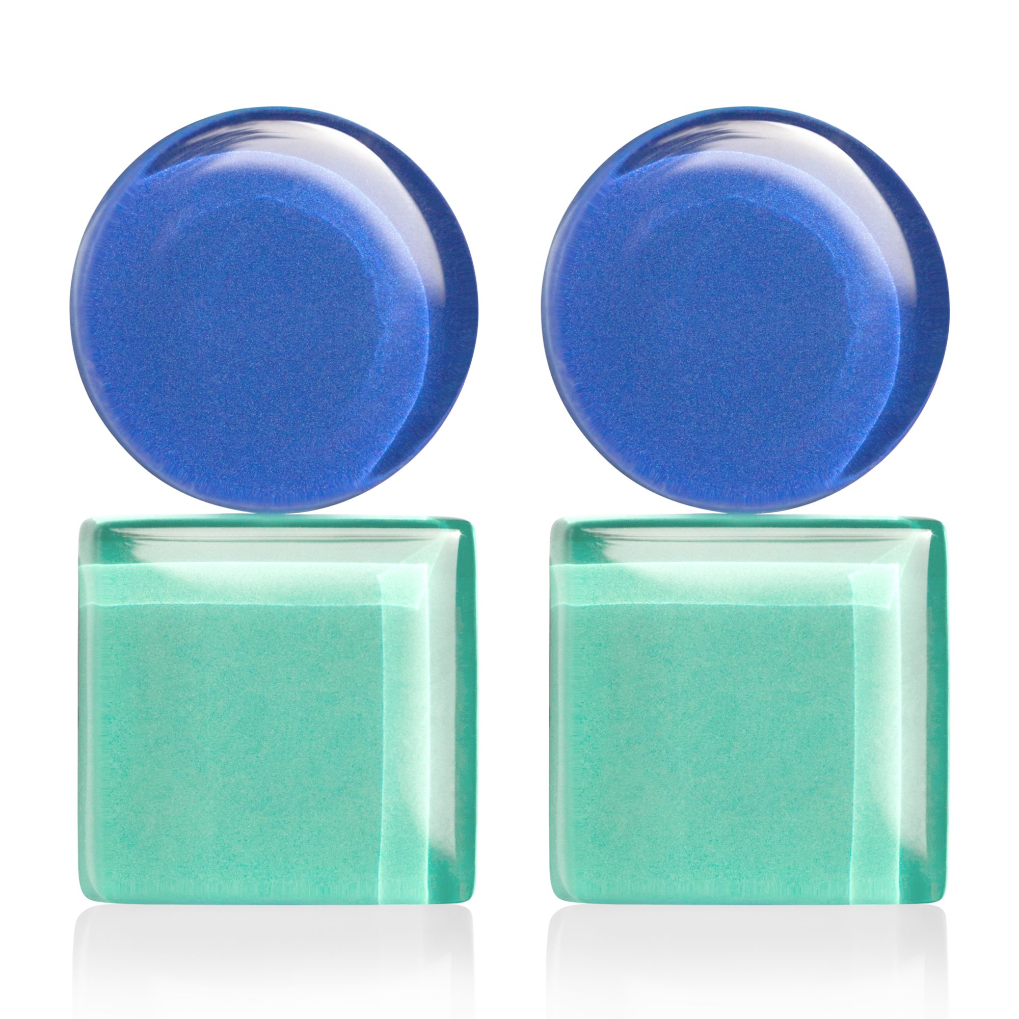 MAßE & MATERIALIEN: Glaselemente aus upcycelten Fliesen, Clips aus Edelstahl. Maße: 30 × 15 × 4 mm, Gewicht: ca. 5 g.