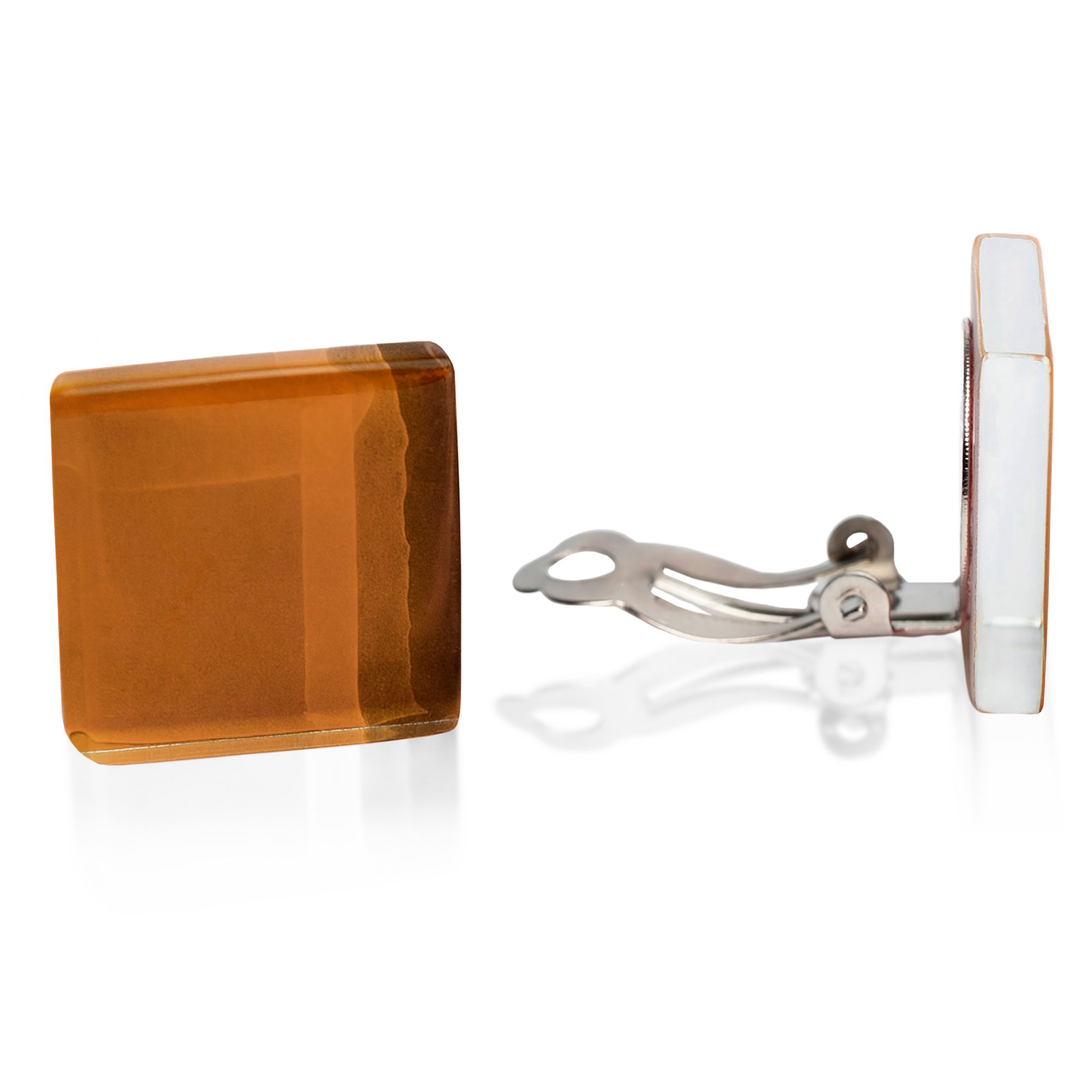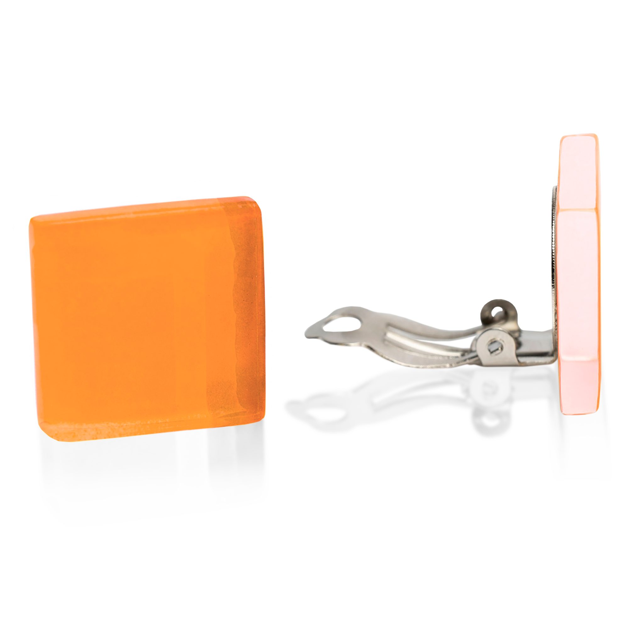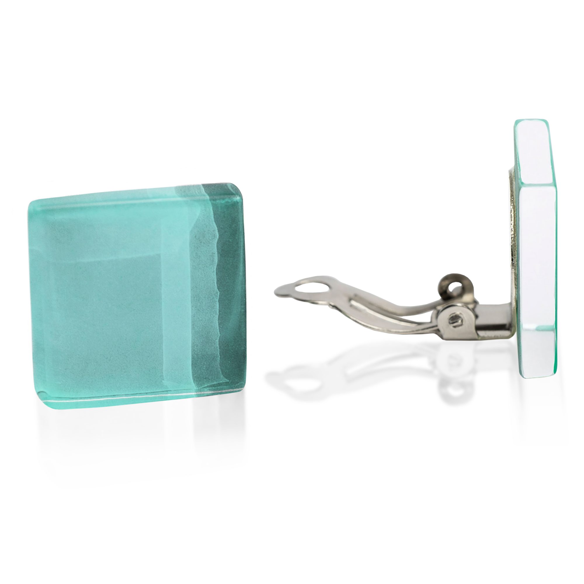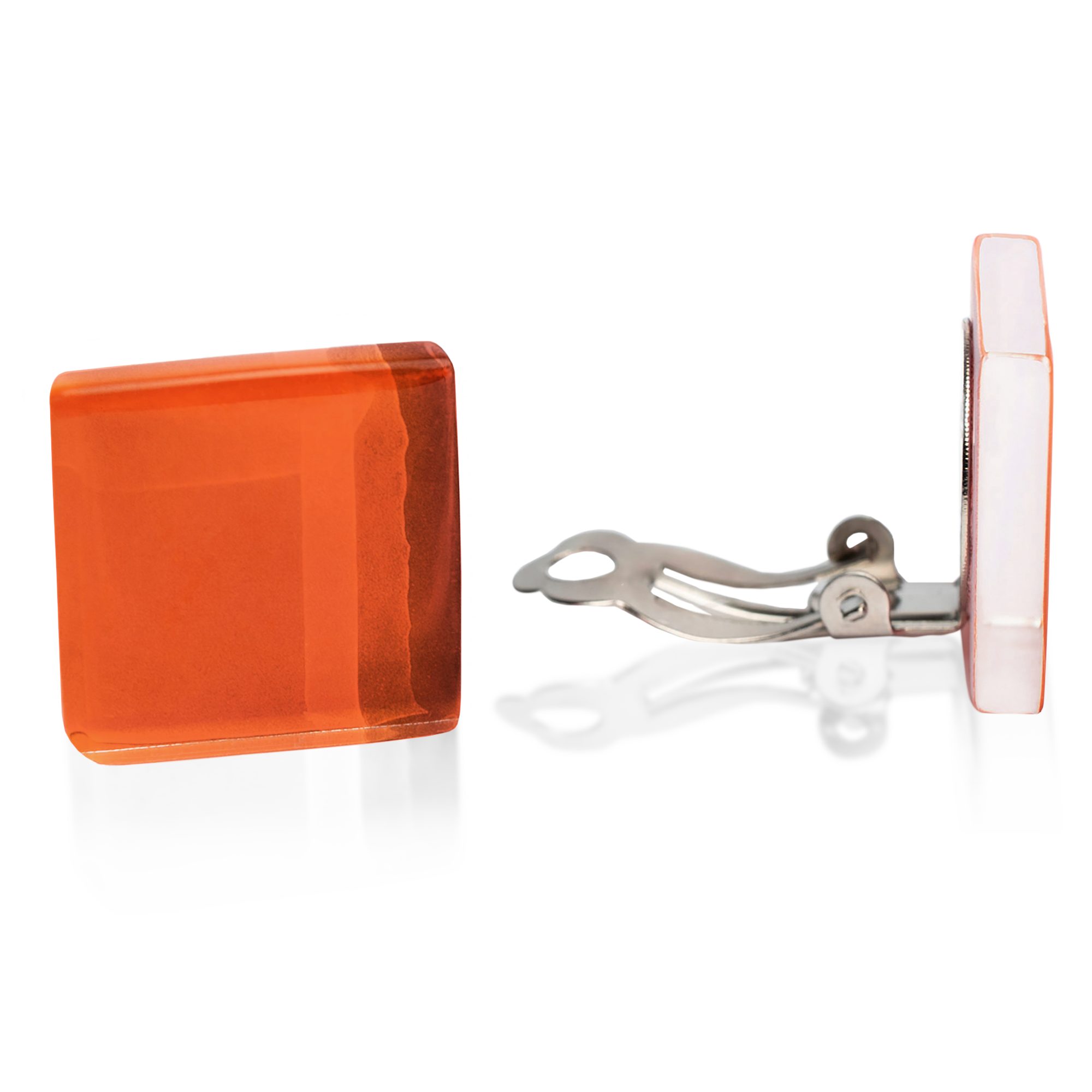 UNIQUE STATEMENT: Bunte Clip-Ohrringe mit leuchtend beschichteten Glassteinen – quadratisch (20 × 20 × 3 mm), farbenfroh und ein echter Hingucker für Dein Ohr.