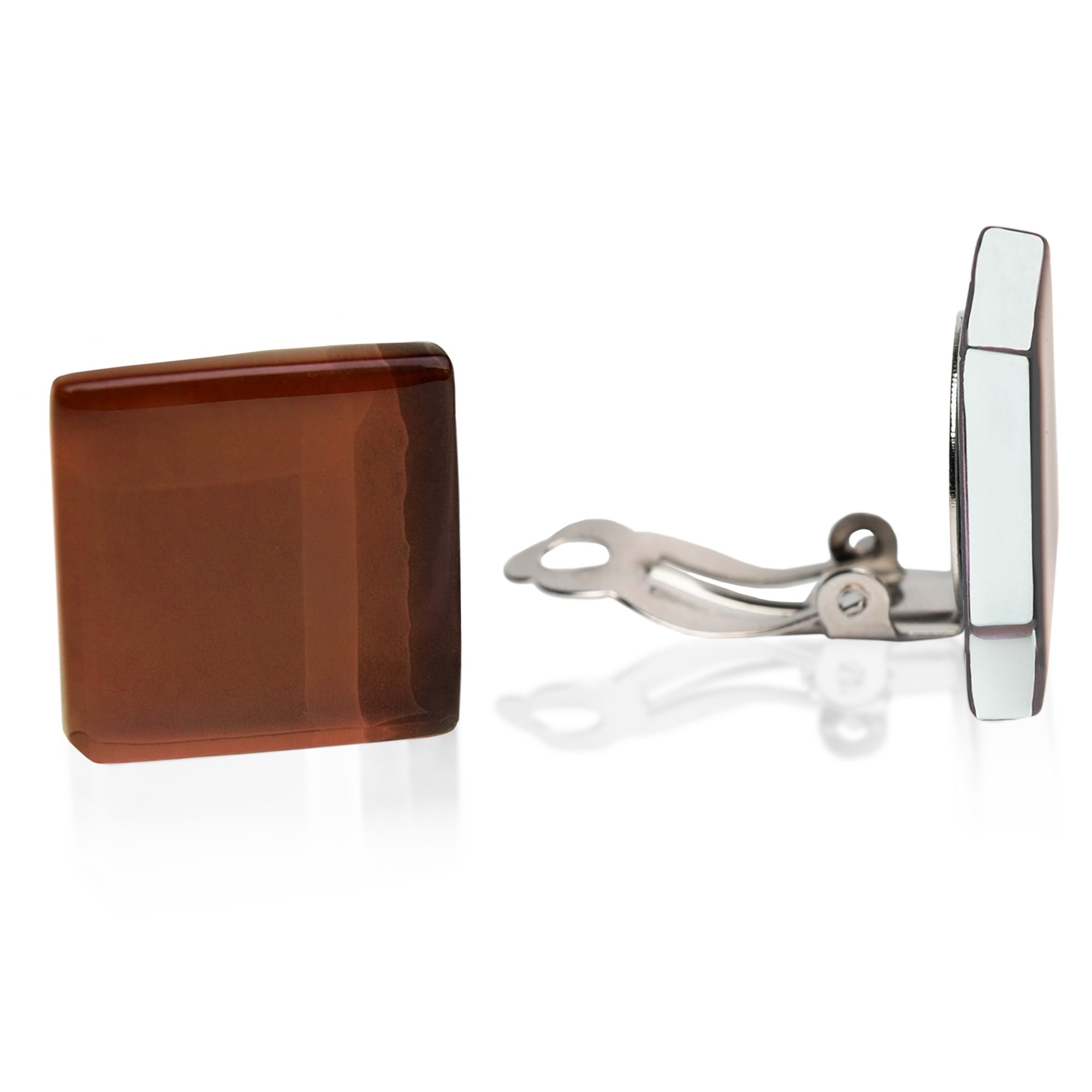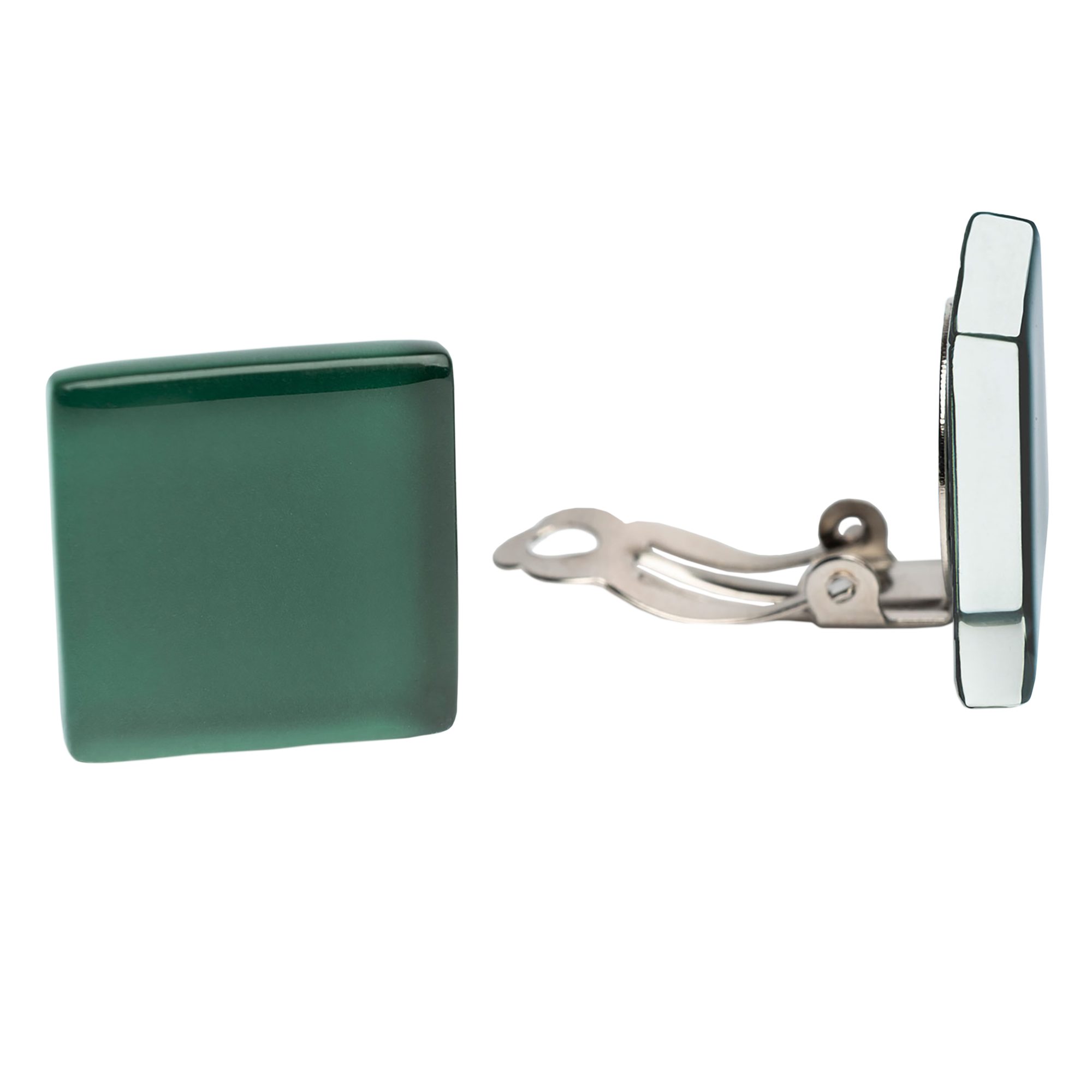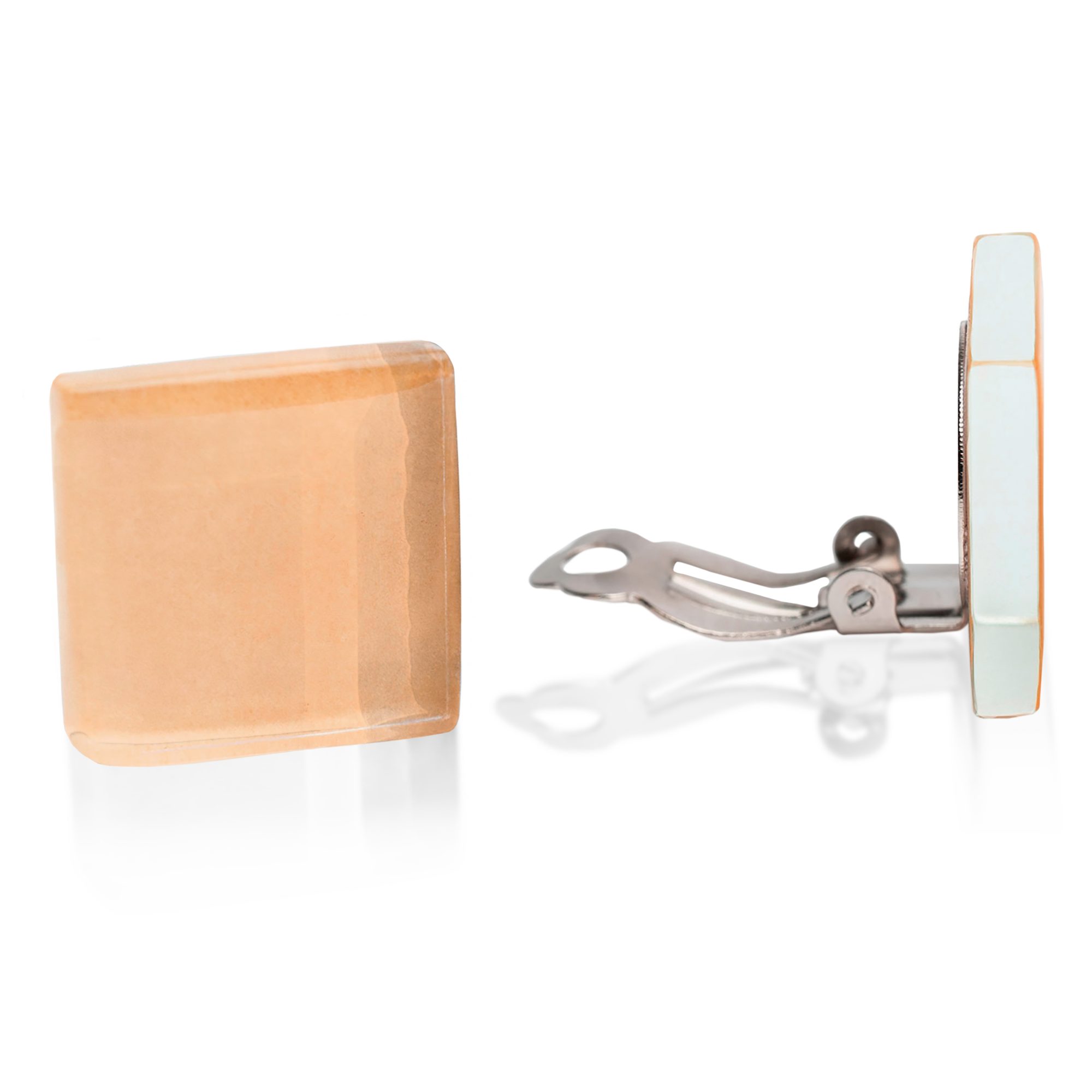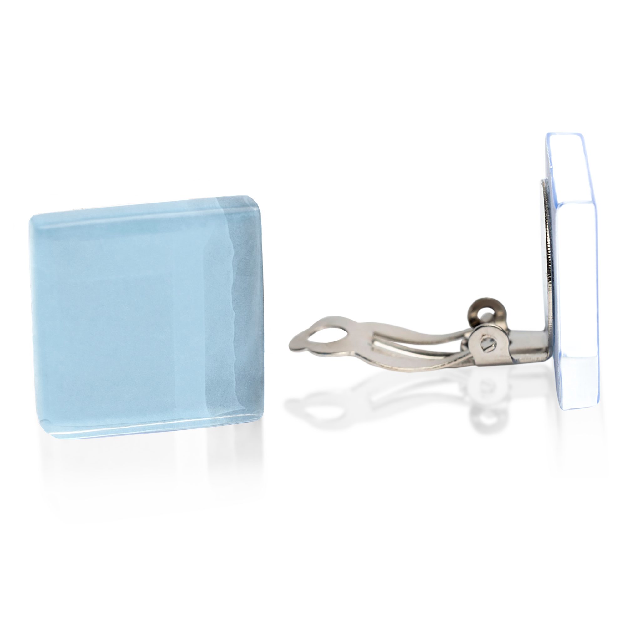 UNIQUE STATEMENT: Bunte Clip-Ohrringe mit leuchtend beschichteten Glassteinen – quadratisch (20 × 20 × 3 mm), farbenfroh und ein echter Hingucker für Dein Ohr.