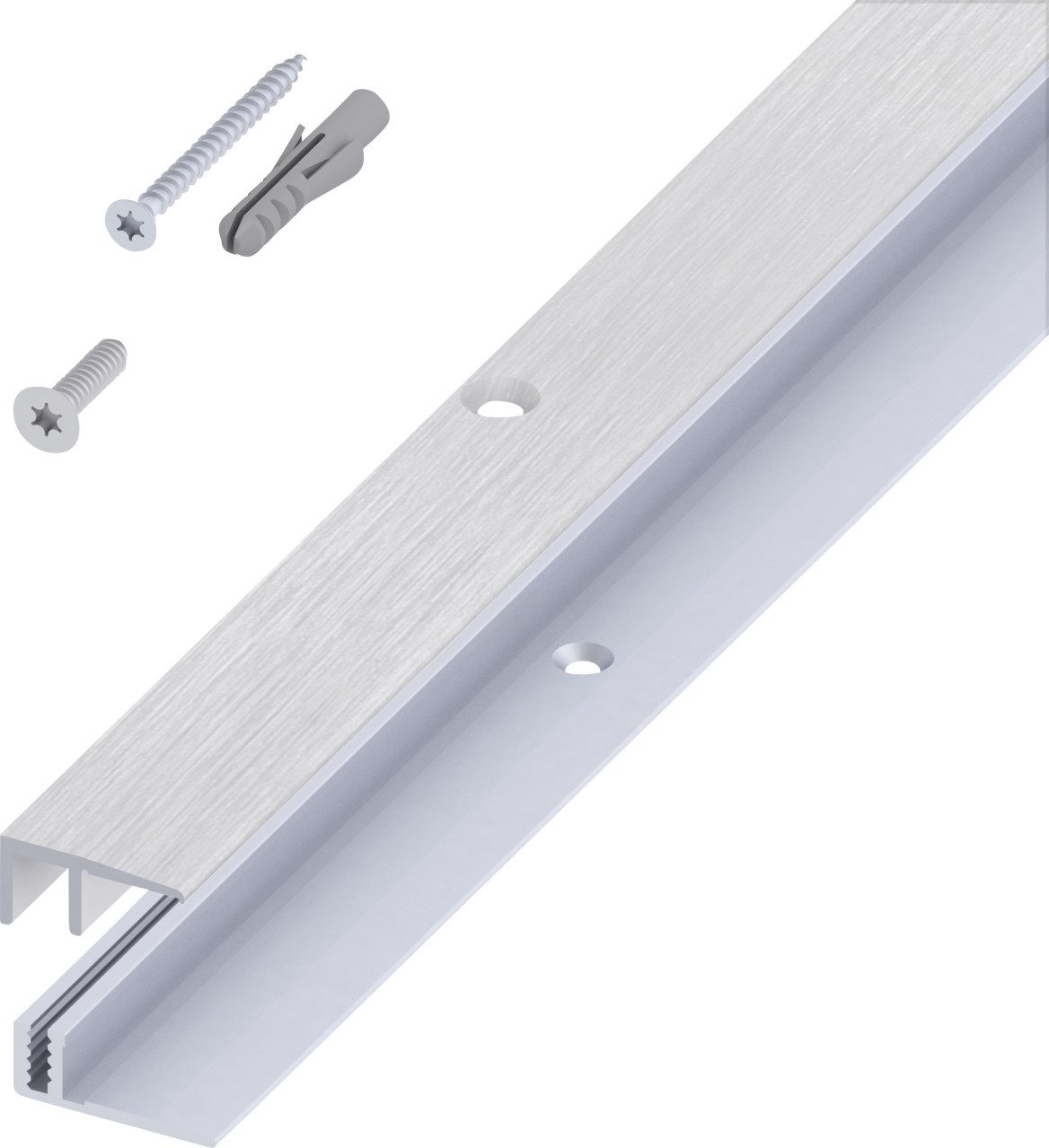 Длина: 1 Meter | Maß A: 21 mm Maß B: 10.5 mm Maß C: 7 - 15mm | Material: Aluminium | Oberfläche: eloxiert gebürstet | Eigenschaft: gelocht | Farbe: grau | Artikelart: Abschluss-Profil | Gewicht: 0.145 kg |