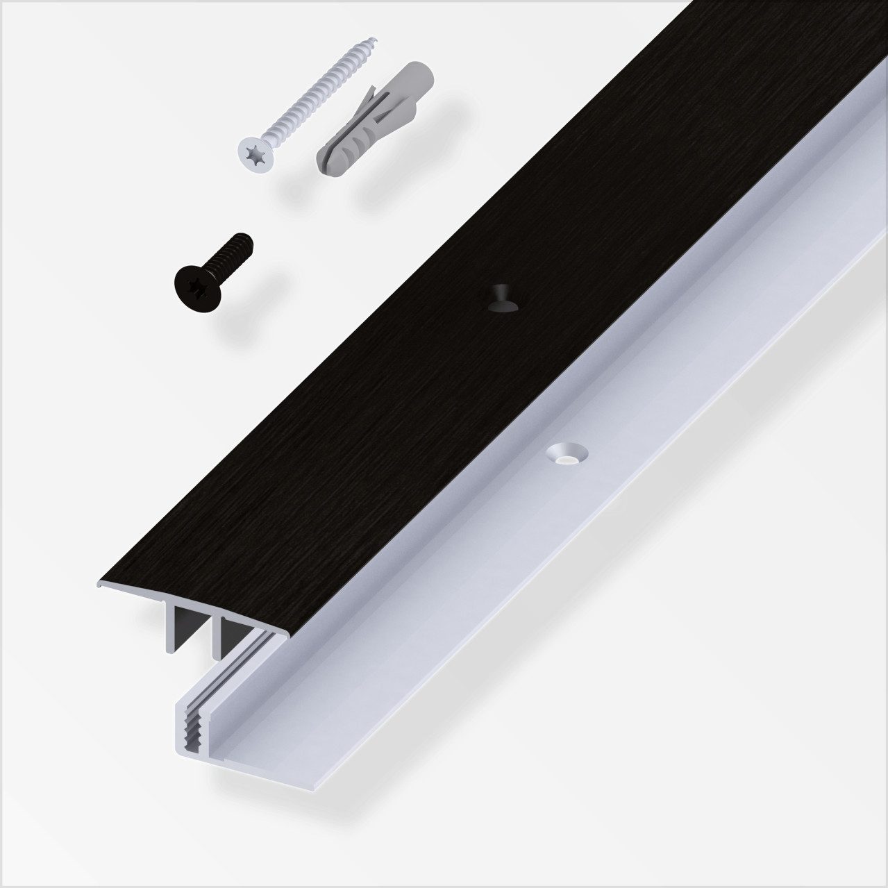 Длина: 1 Meter | Maß A: 33 mm Maß C: 7 - 15 mm | Material: Aluminium | Oberfläche: eloxiert gebürstet | Eigenschaft: gelocht | Farbe: schwarz | Artikelart: Übergangs-Profil | Gewicht: 0.361 kg |