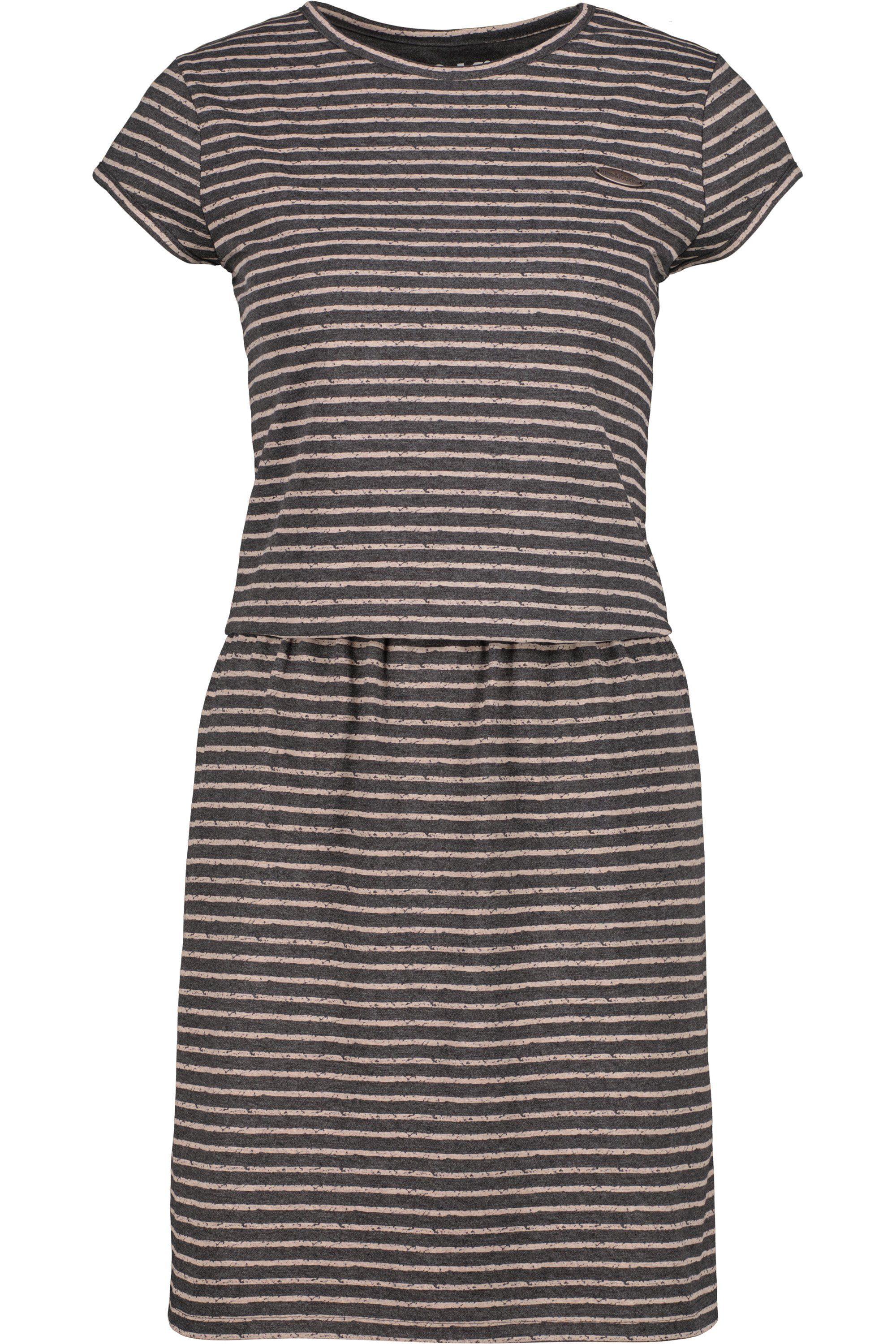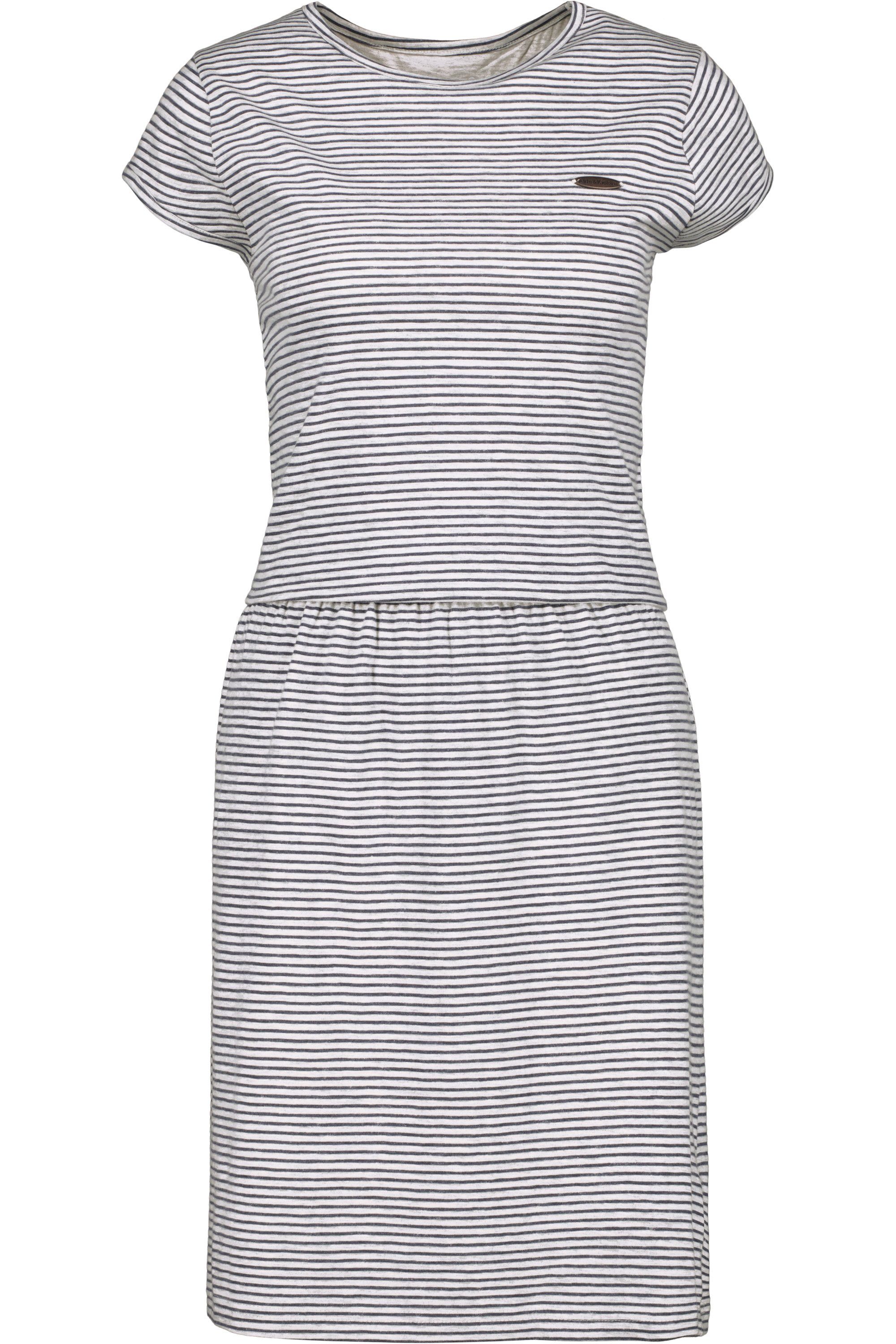 Liebenswert ist das kurze Damenkleid ShannaAK Z von Alife and Kickin schon alleine wegen seiner maritimen Streifenoptik. Ein weiterer Pluspunkt, der für das Sommerkleid spricht, ist die angenehm weiche und dehnbare Jerseyqualität, die gerade im Sommer richtig gut zum tragen kommt. Für den perfekten Sitz des Freizeitkleides sorgt der elastische Taillenbund, der eine schöne weibliche Mitte formt und dem Kleid eine 2-in-1 Optik beschert. Kurzarm mit großem Rundhalsausschnitt präsentiert sich das Jerseykleid als hübsche Alternative zu T-Shirt und Rock und ist in Kombination mit Plateausandaletten, Sonnenbrille und Sonnenhut ein echter Hingucker auf Deiner nächsten Strand - Party. ShannaAK Z ein Kleid für Damen das Dich in jeder Situation richtig gut kleidet.