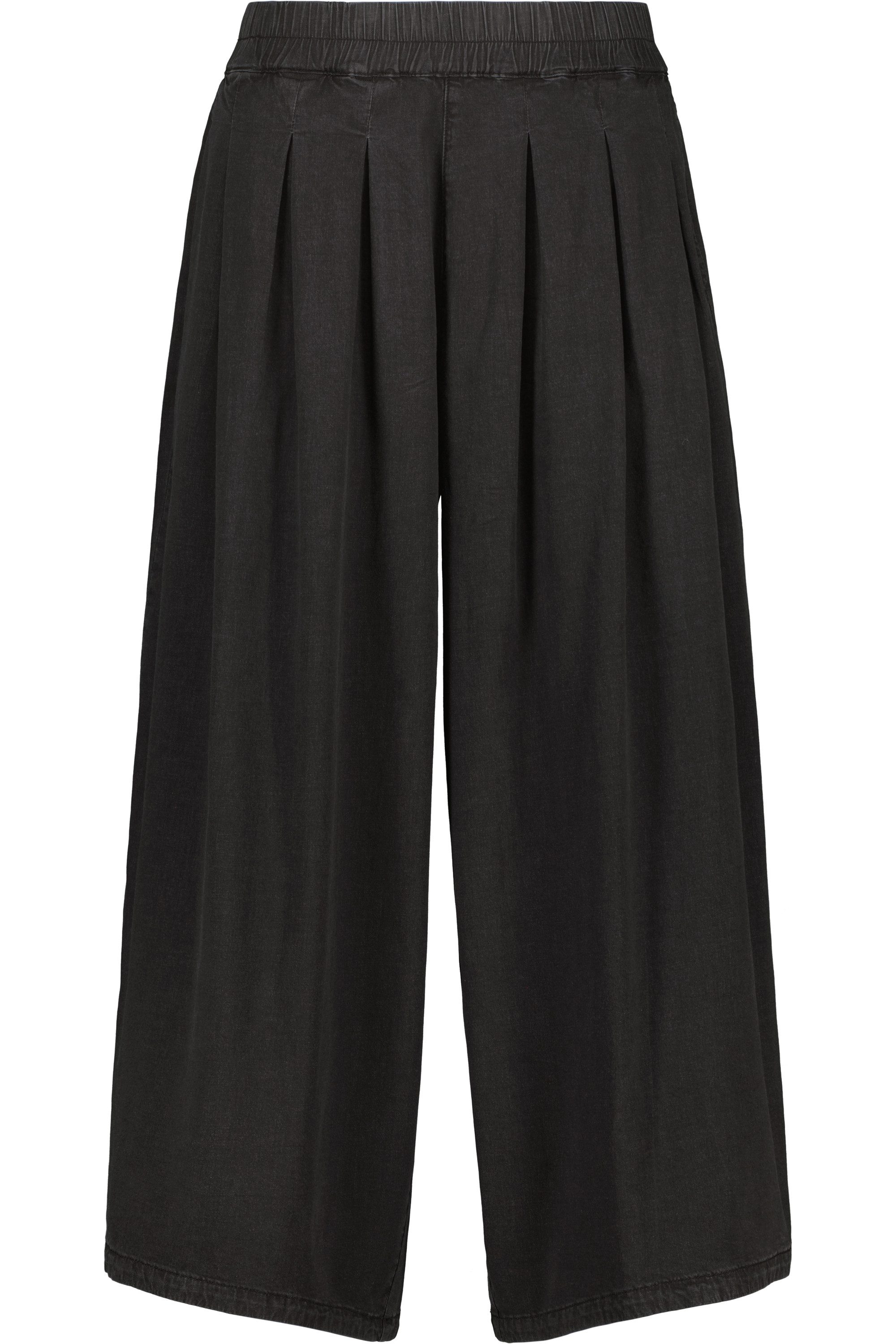 Eine Stoffhose mit Taschen und extra weitem Beinschnitt aus leichten Material in Denim Optik
