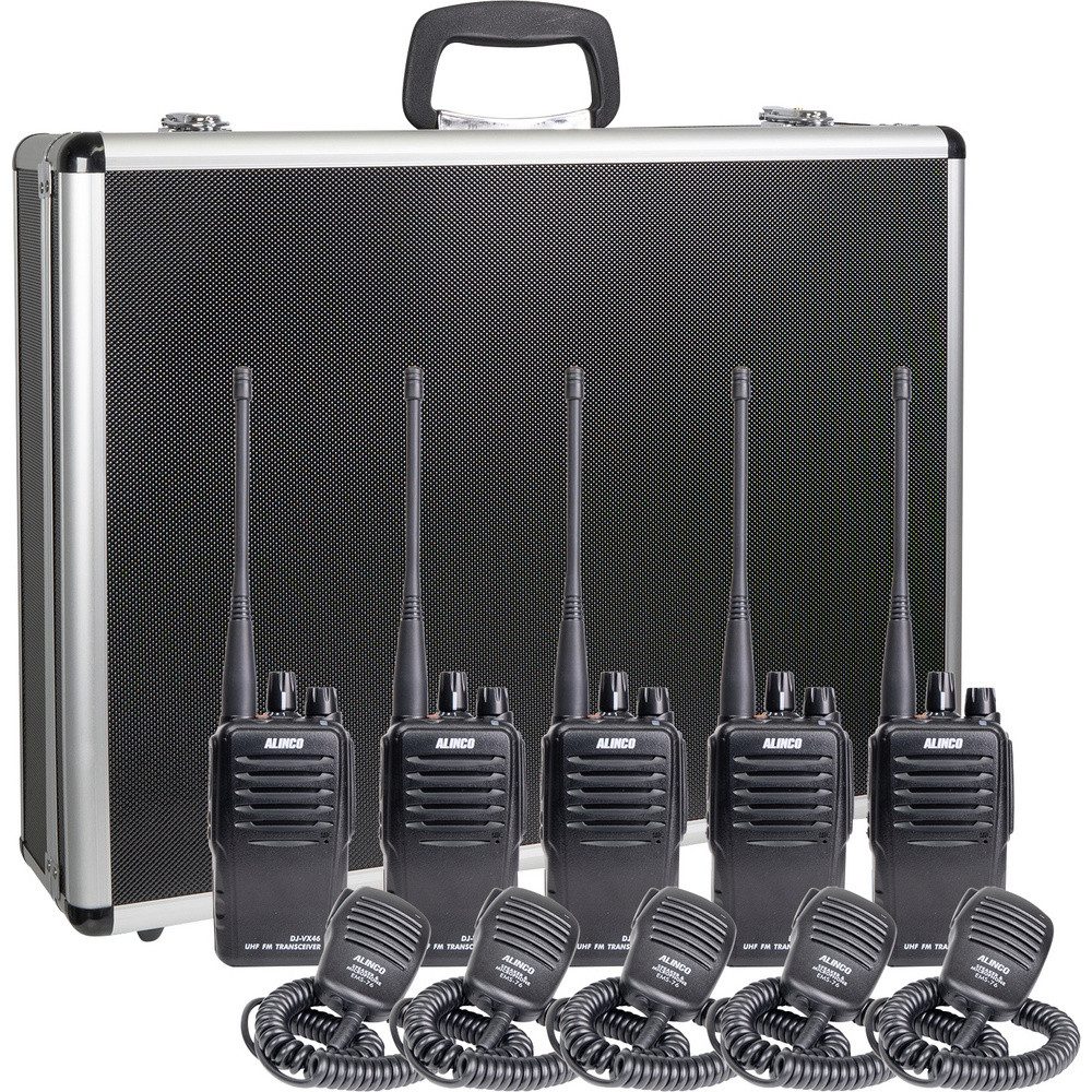 5 x Alinco DJ-VX-46 Handfunkgerät + 5 x Akkupack EBP-101 (Li-Ion/ 7,4 Volt/ 1800 mAh) + 230 Volt Tischlader (Standlader) + eingebaute Antenne + Gürtelclip EBC-51 & Trageband + Bedienungsanleitung + 5 x Alinco EMS-76 Lautsprechermikrofon + Koffer