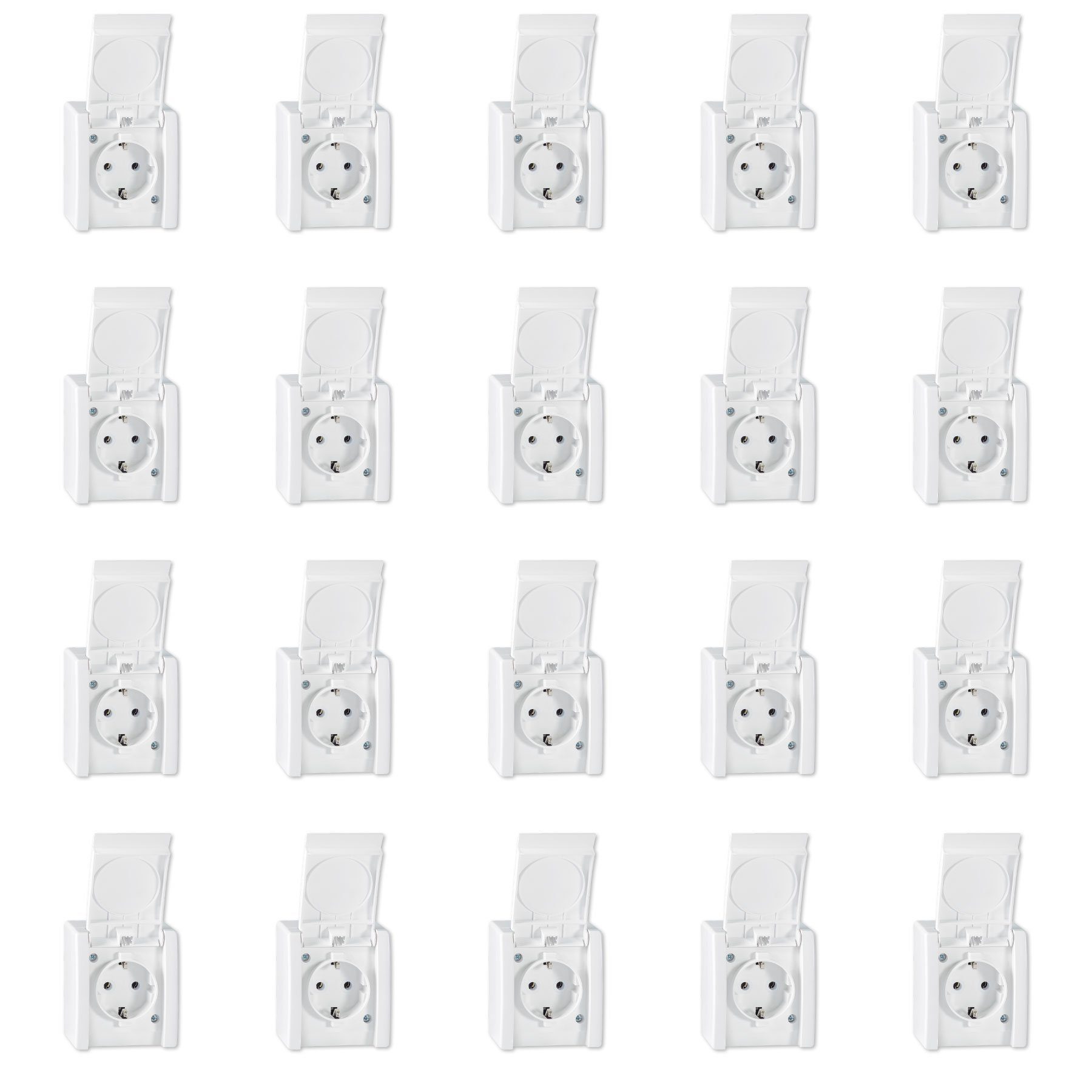 Lieferumfang | 1 x 1-fach Steckdose mit Klappdeckel für Feuchtraum Schutzkontakt |