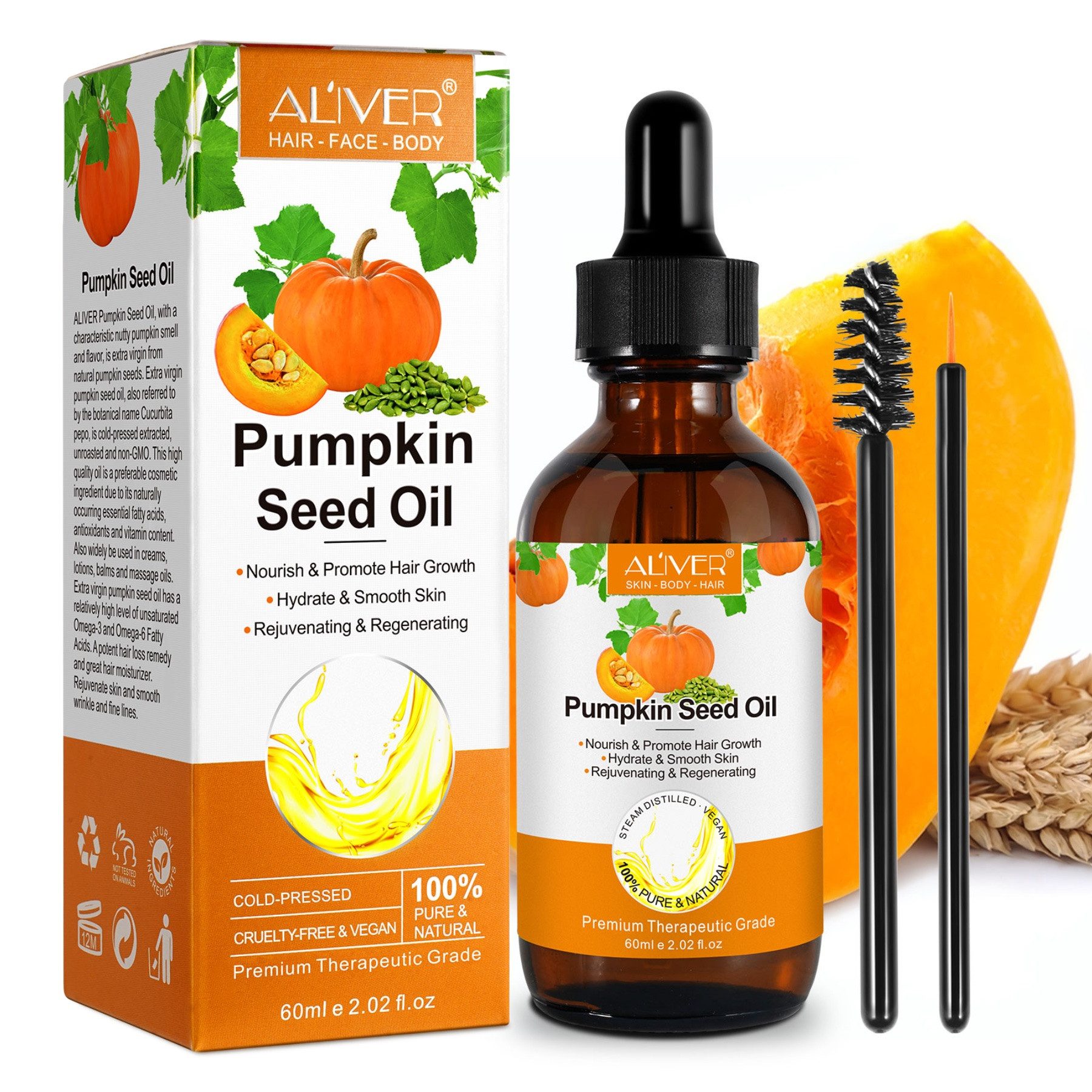 Kürbiskern Haaröl Haarwachstum Wimpern Bart Nägel Öl Kaltgepresst Bio Vegan