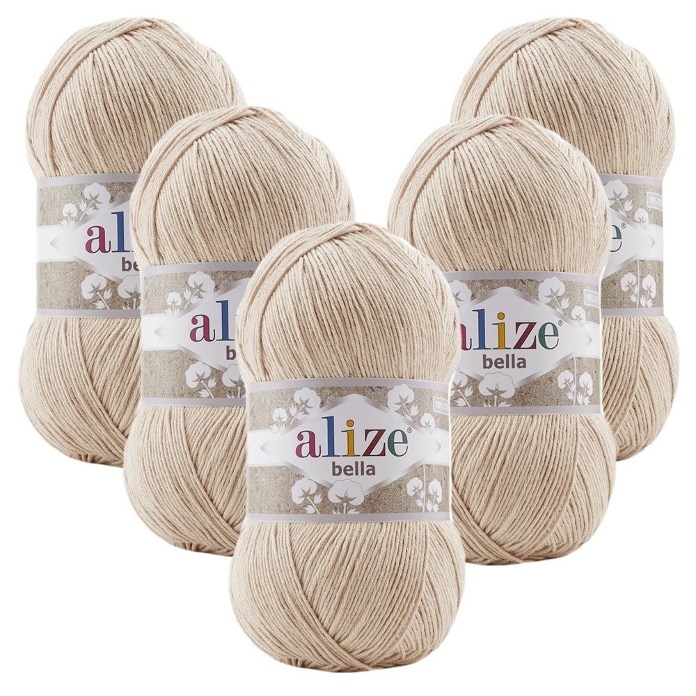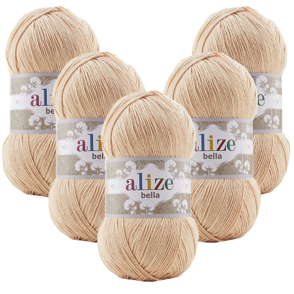 Alize Bella ist ein wunderschönes, dünnes Garn aus reiner Baumwolle. Die Wolle ist zum Stricken und Häkeln von Kleidung für warme Tage und Accessoires geeignet.