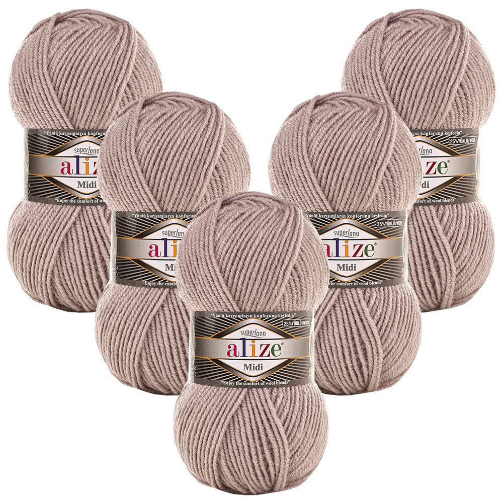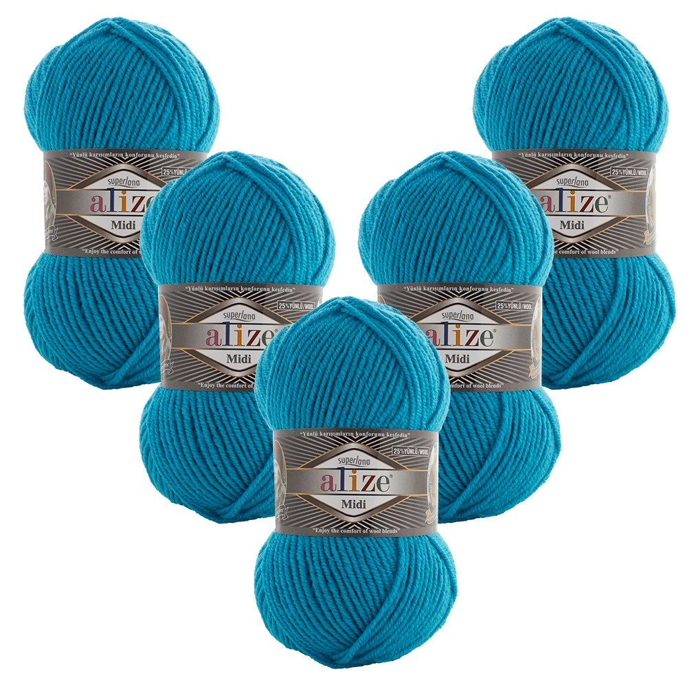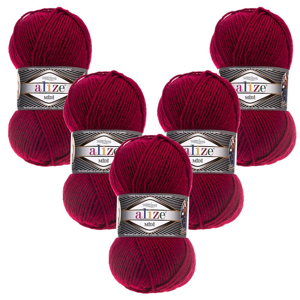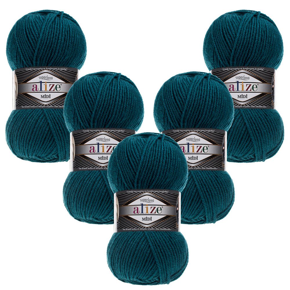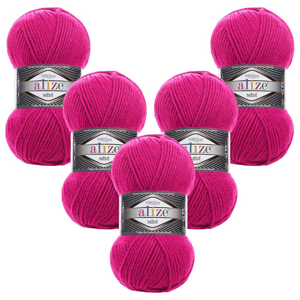 Alize Superlana Midi ist ein hochwertiges Mischgarn, das perfekt für das Stricken von Kleidung und Accessoires geeignet ist. Mit einem Schurwollanteil von 25% bietet es Wärme und Komfort, während das Acryl für eine angenehm weiche Haptik sorgt. Die Winterwolle Superlana MIDI präsentiert eine vielfältige Farbpalette, die von einfarbigen bis hin zu leicht melierten Knäueln reicht. Diese mitteldicke Wolle eignet sich ideal für Winterprojekte wie Mützen, Schals und Pullover. Die empfohlenen Nadelgrößen ermöglichen eine einfache Handhabung und das Garn ist vielseitig einsetzbar für kreative Strick- und Häkelprojekte.