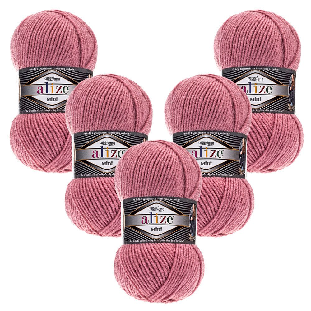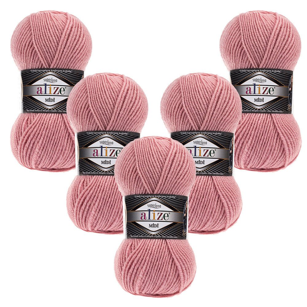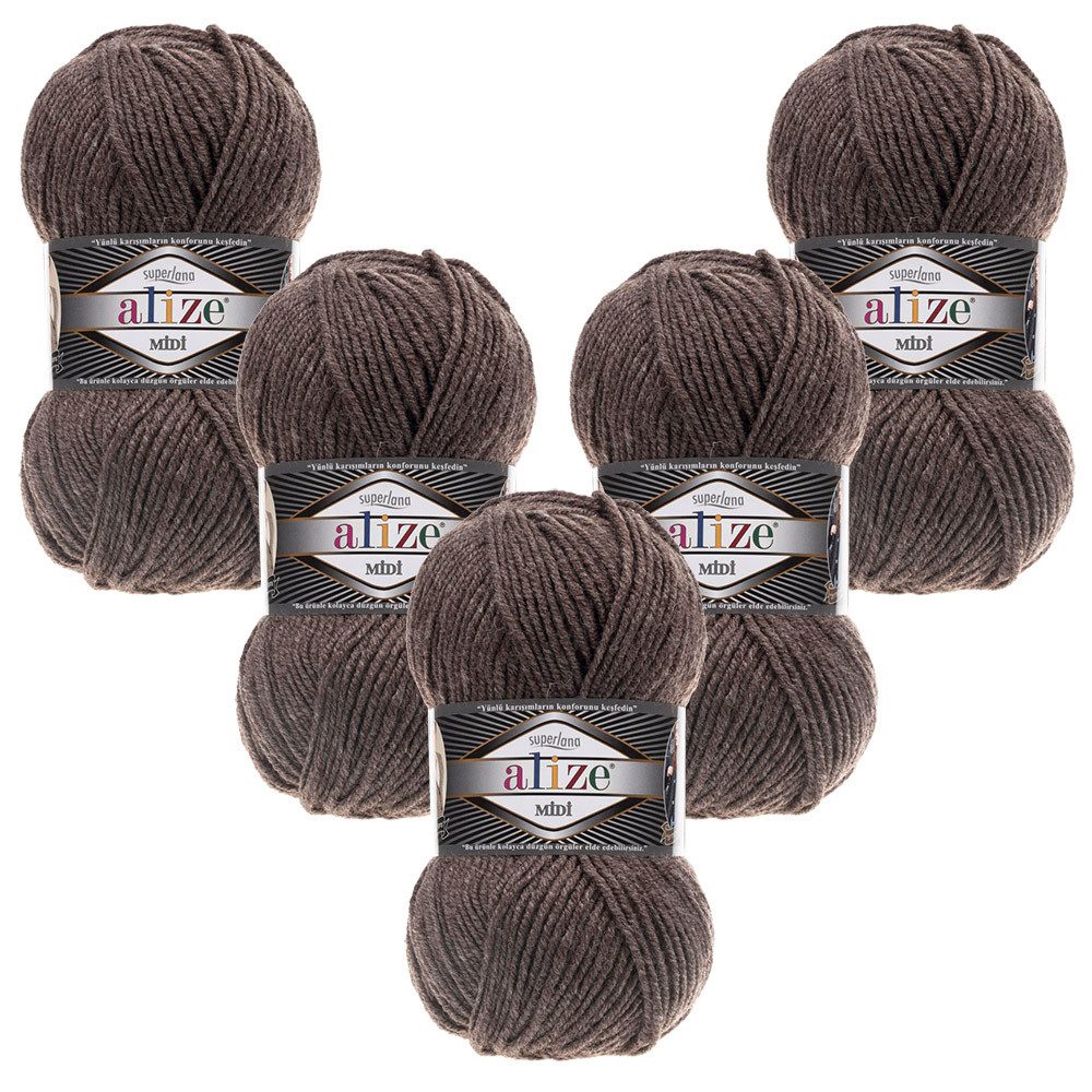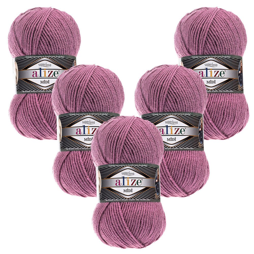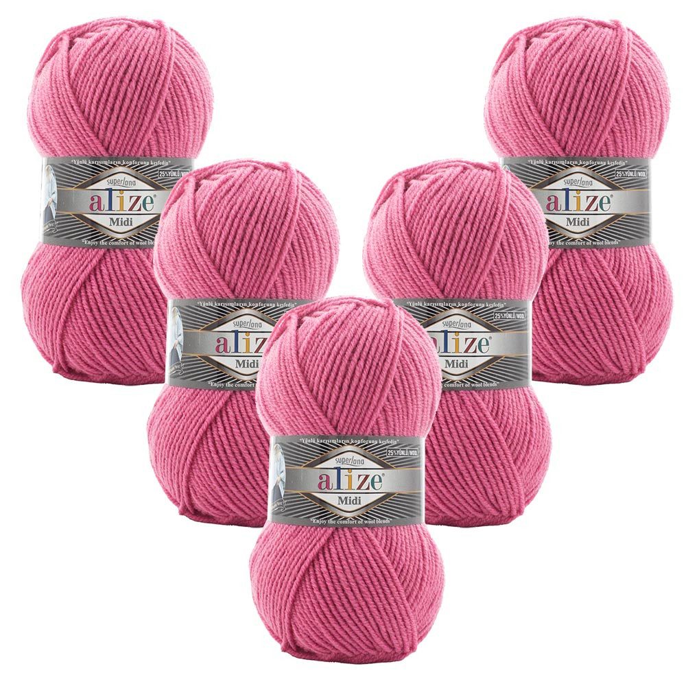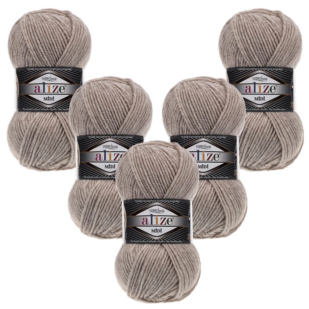 Alize Superlana Midi ist ein hochwertiges Mischgarn, das perfekt für das Stricken von Kleidung und Accessoires geeignet ist. Mit einem Schurwollanteil von 25% bietet es Wärme und Komfort, während das Acryl für eine angenehm weiche Haptik sorgt. Die Winterwolle Superlana MIDI präsentiert eine vielfältige Farbpalette, die von einfarbigen bis hin zu leicht melierten Knäueln reicht. Diese mitteldicke Wolle eignet sich ideal für Winterprojekte wie Mützen, Schals und Pullover. Die empfohlenen Nadelgrößen ermöglichen eine einfache Handhabung und das Garn ist vielseitig einsetzbar für kreative Strick- und Häkelprojekte.