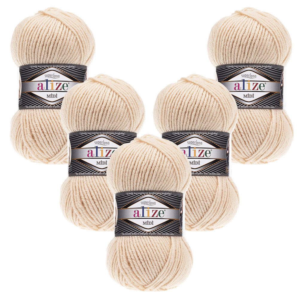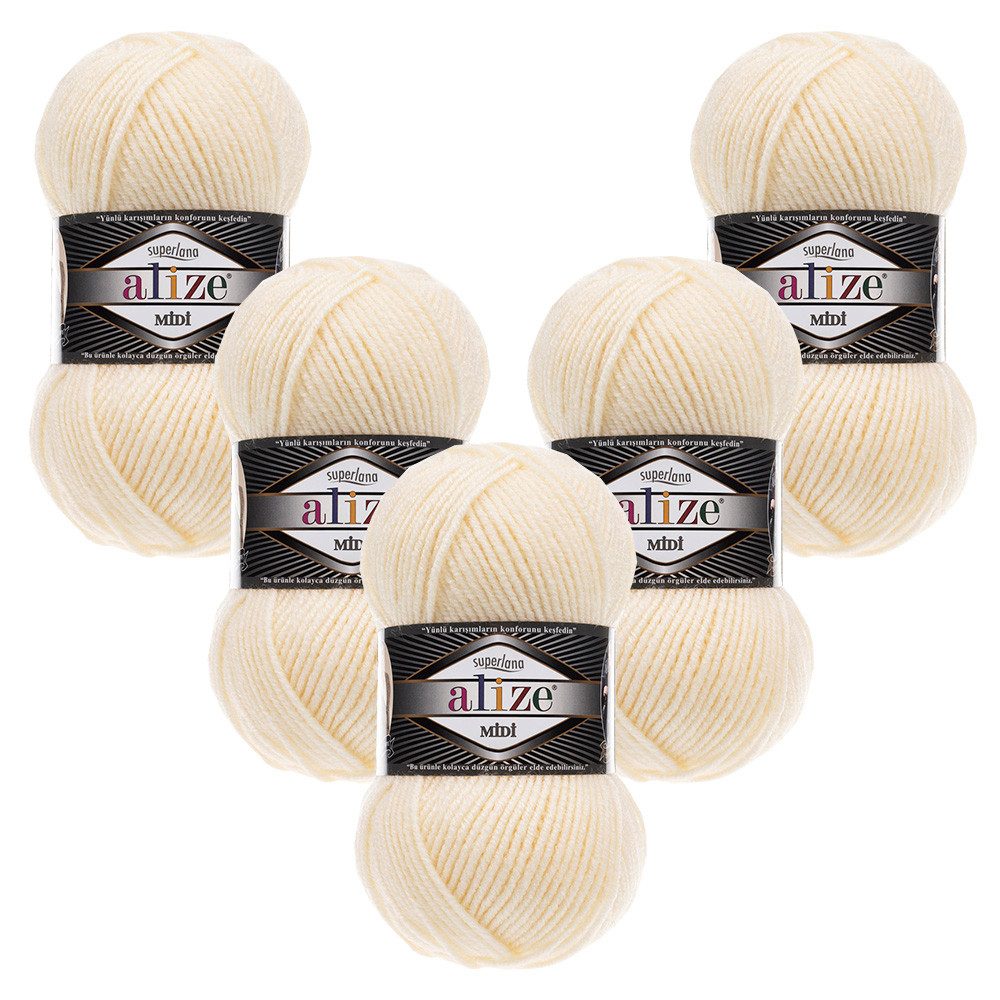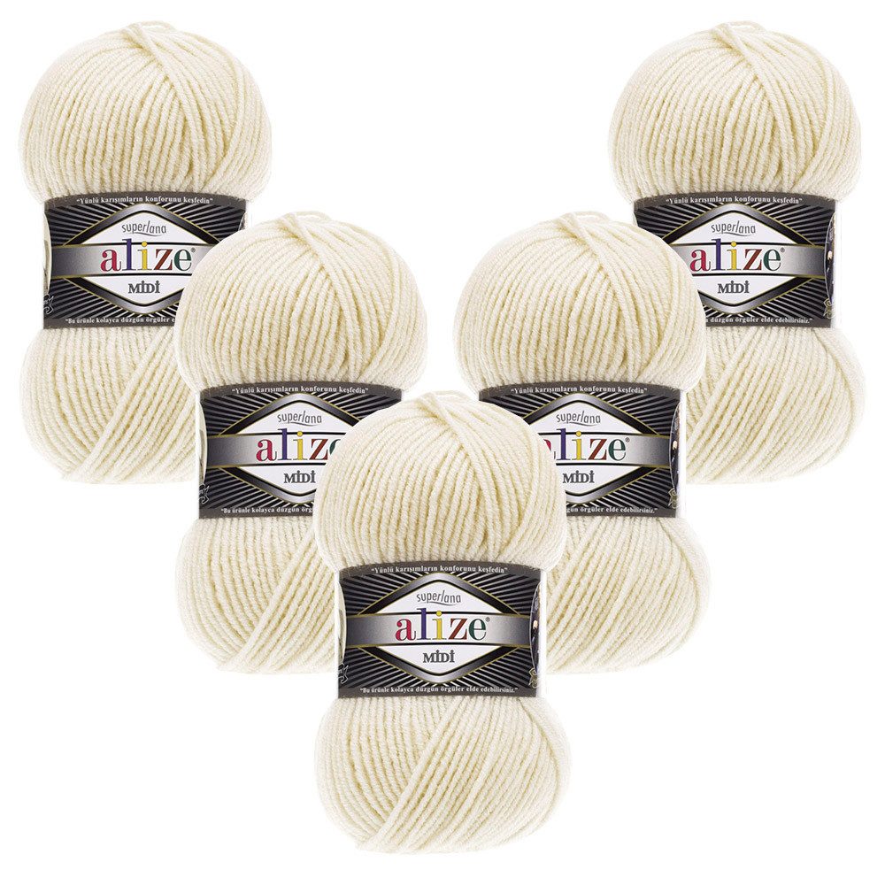 Farbe | 5 x ALIZE Superlana Midi 599 Ivory |