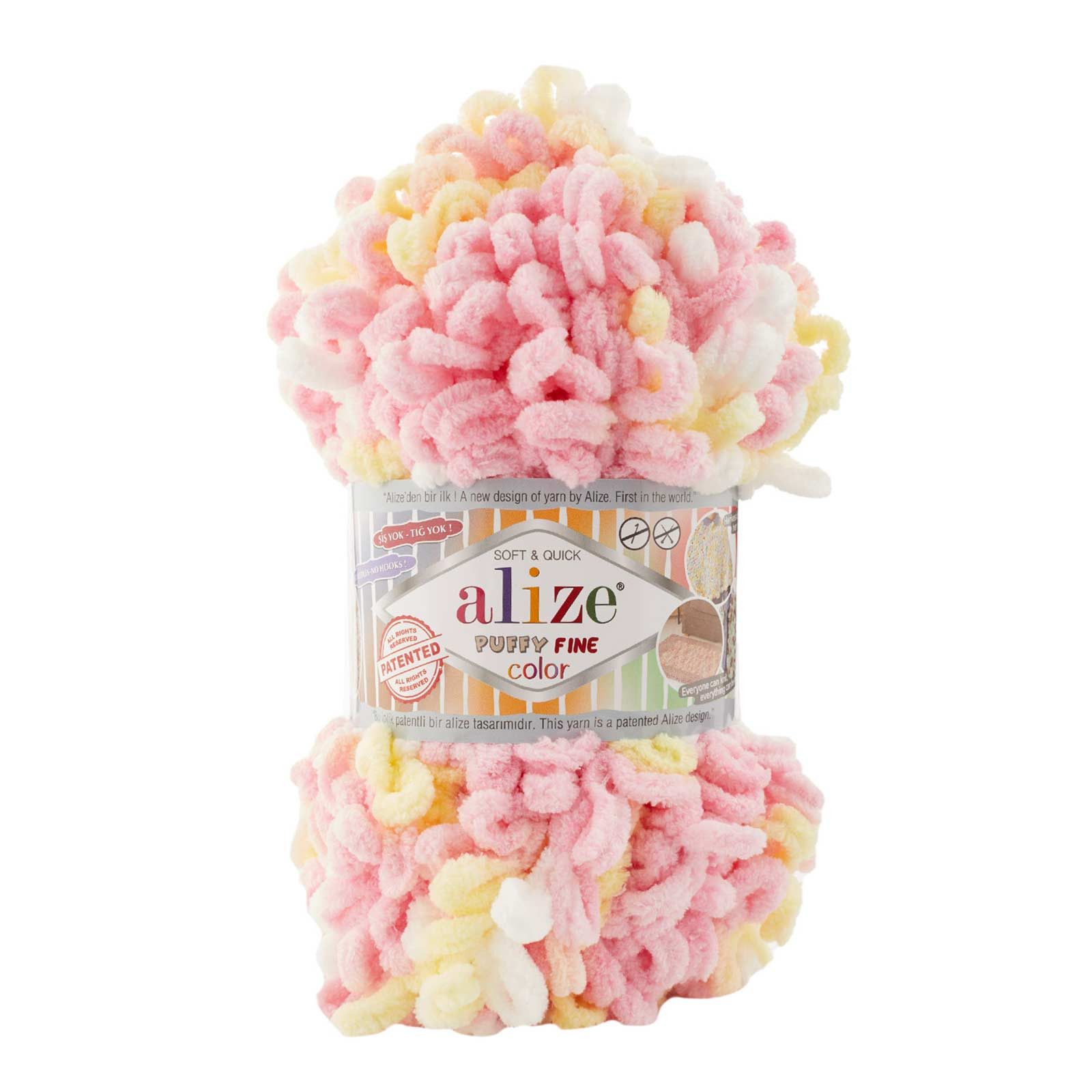 ALIZE Puffy Fine ist ein plüschiges und zauberhaft weiches Strickgarn, welches mit den Fingern - also komplett ohne Nadeln verarbeitet wird. Bei der Puffy Fine sind die Ösen (Schlaufen) etwas kleiner als bei der ALIZE Puffy. Somit kann man feiner und strukturiertere Strickmuster erschaffen. Mit der plüschig weichen Oberfläche eignet sich diese Wolle perfekt für kuschelige Babydecken, flauschige Mützen, fantasievolle Schals sowie süße Babyschühchen. Mit seiner tollen Farbauswahl lassen sich traumhafte und kuschelige Babysachen stricken. Freu dich auf Dein nächstes Projekt.