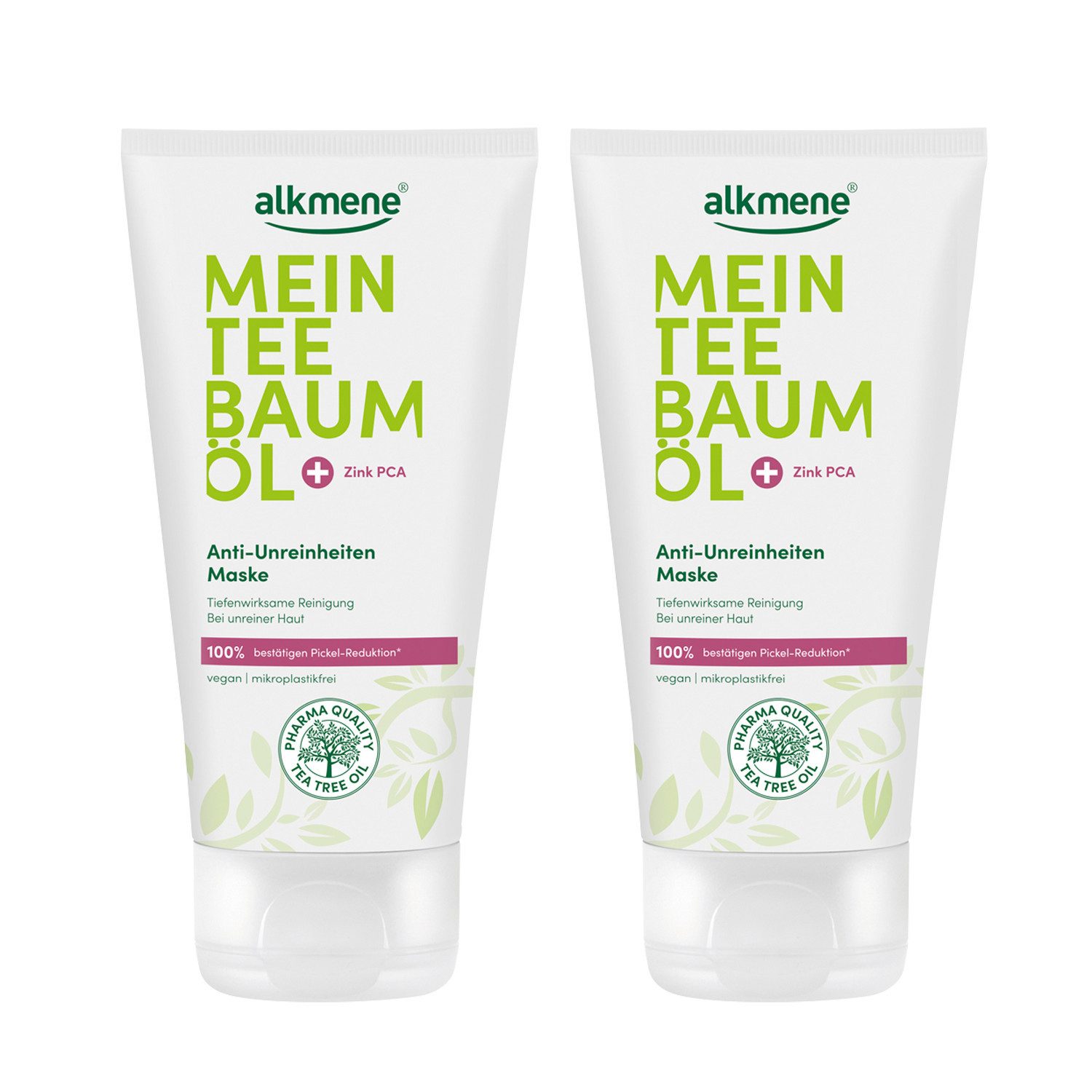 alkmene Gesichtsmaske 150 ml Teebaumöl Maske gegen Pickel, Mitesser & Unreinheiten - vegan, 2-tlg.