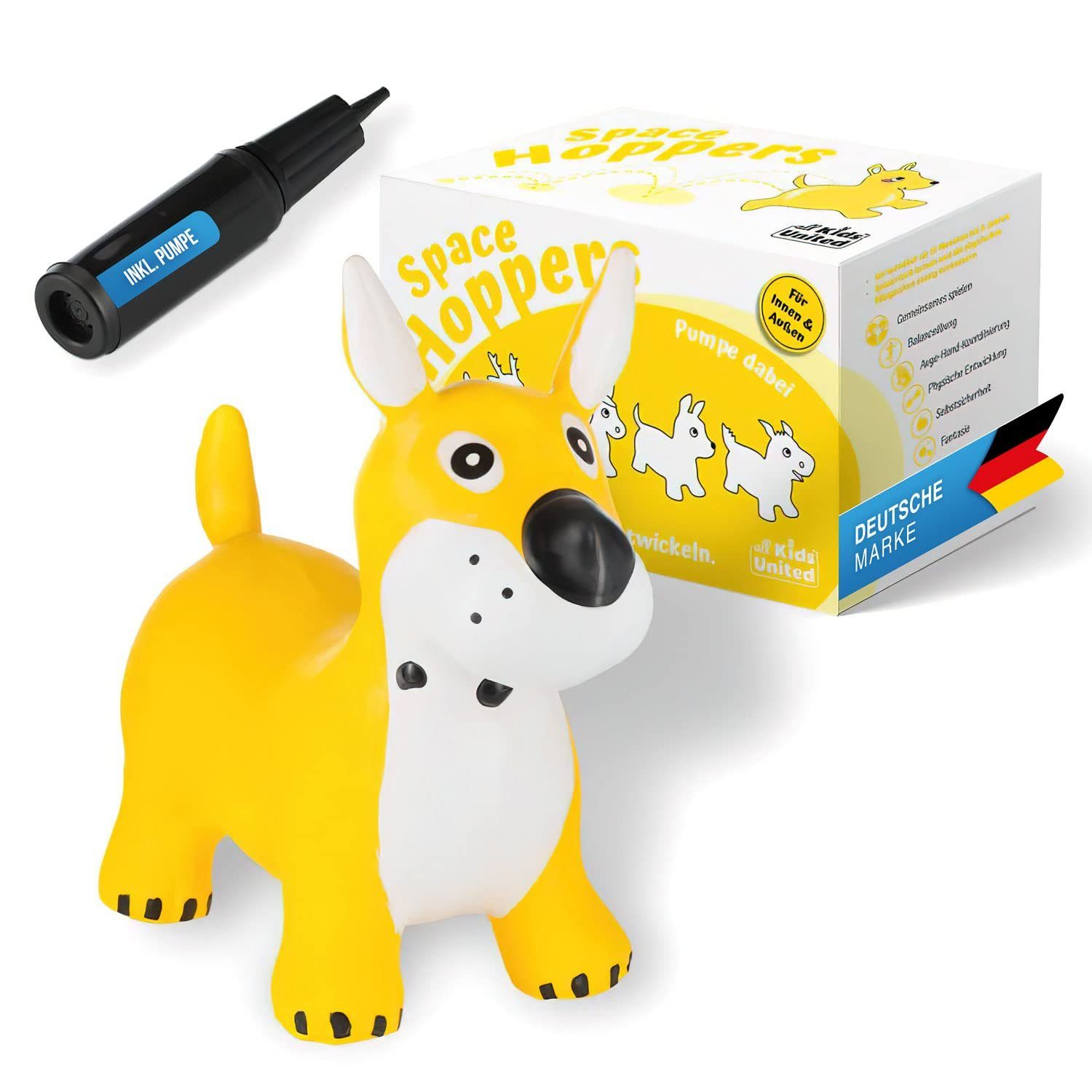 Aber auch schon Kleinstkinder unter einem Jahr haben Spaß mit diesem Spielgerät. Mama und Papa müssen noch ein bisschen festhalten – aber das Hüpfen klappt meist schon von ganz alleine. Und wenn nicht, dann wird das Hüpftier eben gerne umgeworfen, beklettert oder einfach umarmt. Man kann auf dem Hüpftier hin- und herschaukeln oder einfach bei den ersten Greifversuchen nach dem Einhorn, dem Geweih, dem Hundeschwanz oder den Ohren greifen. Sie können das Hüpftier über die mitgelieferte Pumpe der Размер Ihres Kindes anpassen. Das Hüpftier wächst einfach mit und ist damit das perfekte Geschenk – ab der Geburt. Schon so manches Kind ist von diesem Hüpftier zum ersten Mal in den aufrechten Stand gekommen.