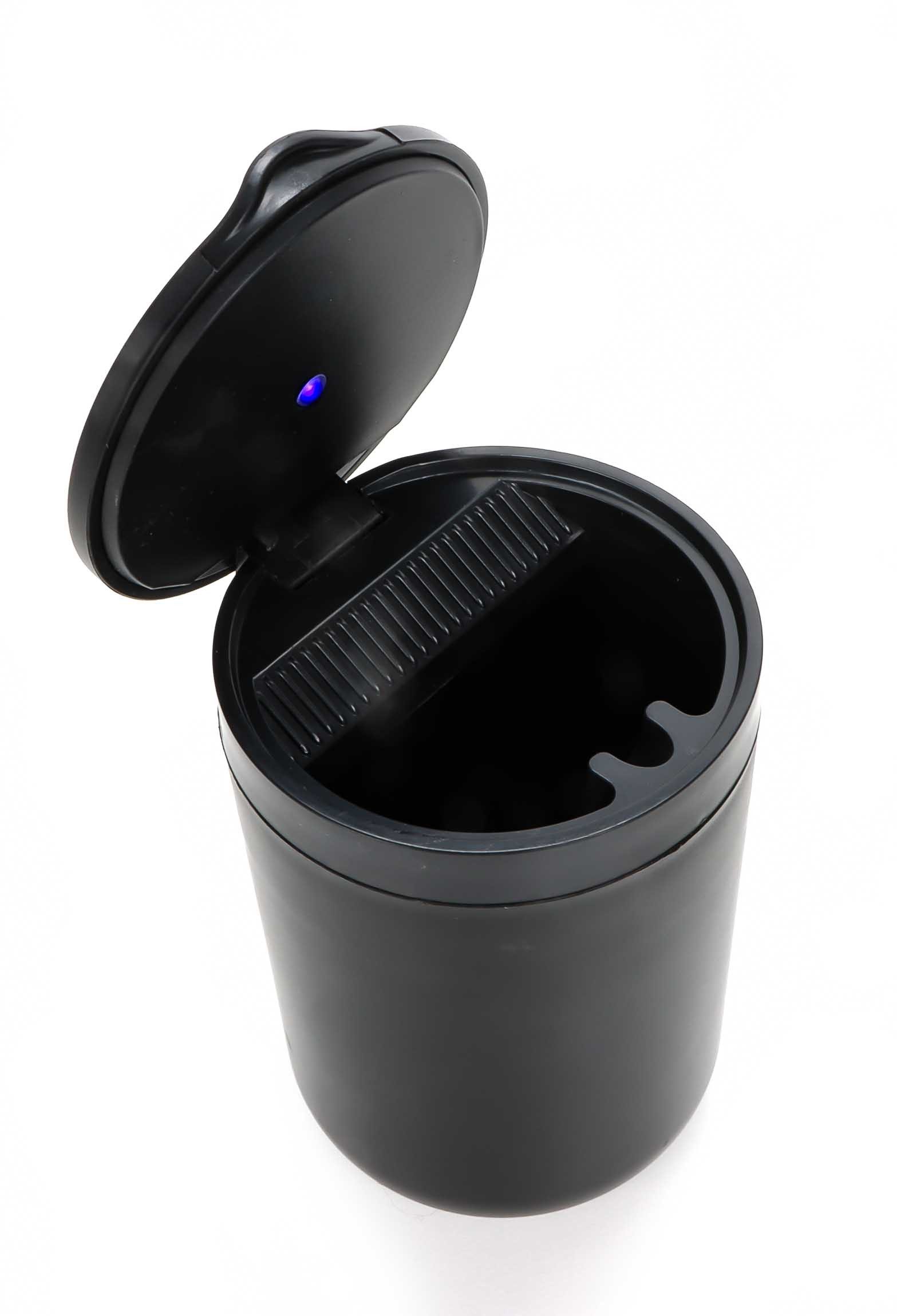 -1x Aschenbecher mit Klapp-Deckel inklusive LED-Leuchte für Getränkehalter in PKWs, LKWs etc. und Outdoor, schwarz