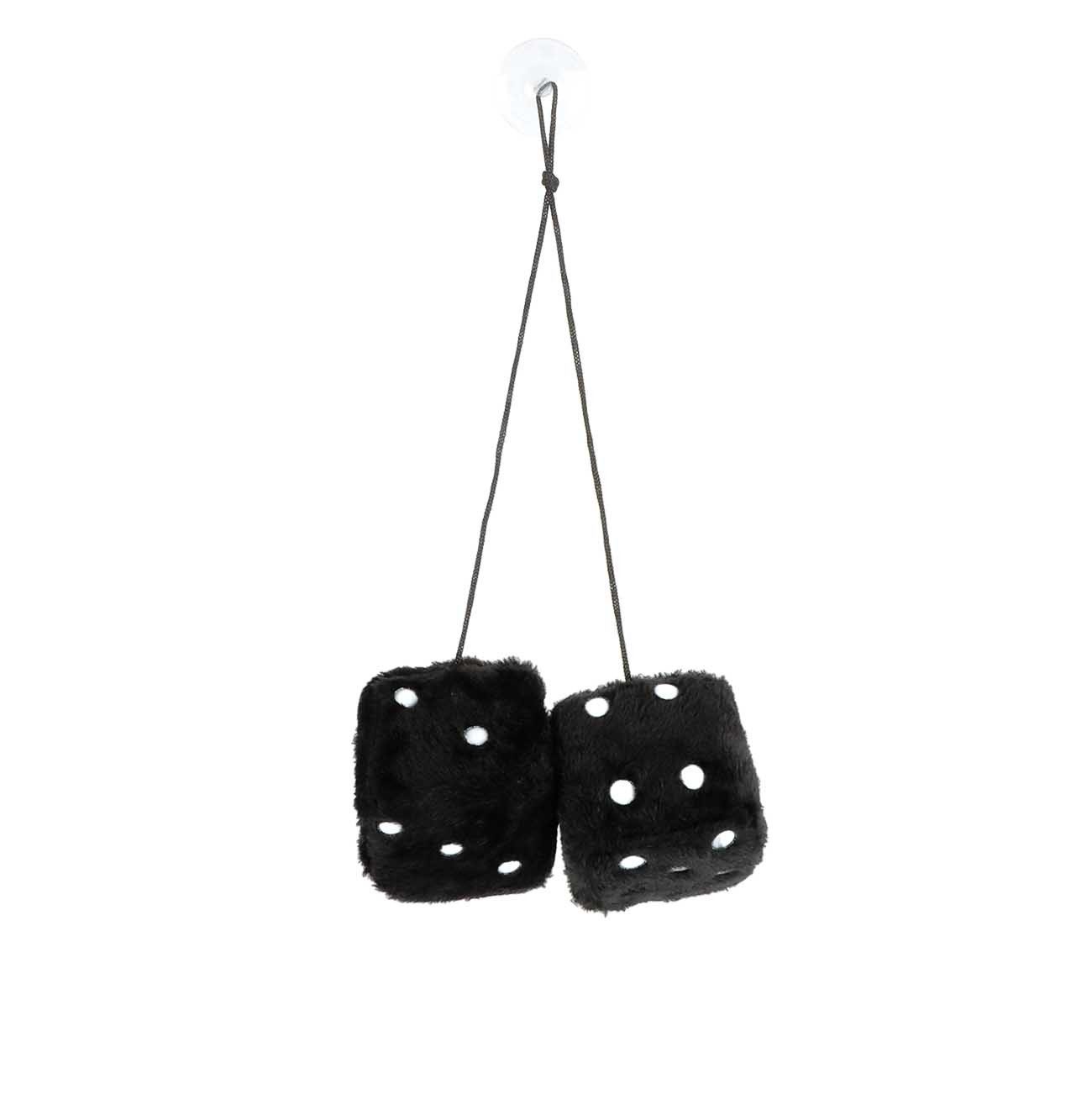 -1x schwarze Plüsch-Würfel, 2 Stück im Set verbunden mit einer schwarzen Kordel zum Aufhängen plus Saugnapf-Halter