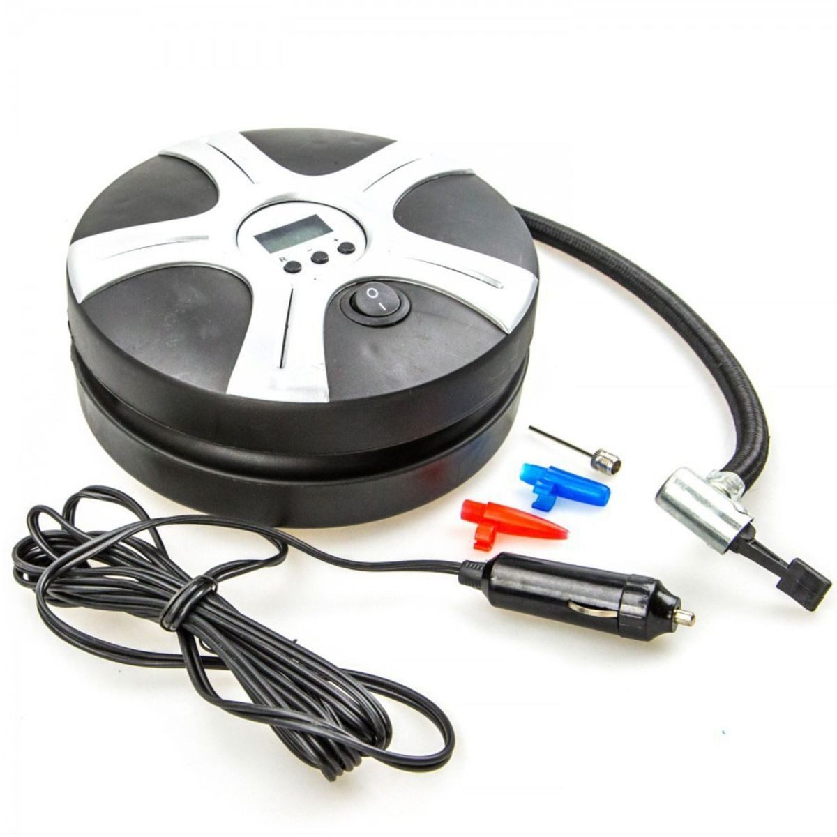 Dieser runde Kompressor fällt sofort durch sein Alufelgendesign ins Auge. Mit diesem digitalen Luftdruckkompressor ist einfaches Aufpumpen von Auto- und Fahrradreifen und Campingartikeln möglich. Einfach an den Zigarettenanzünder anschliessen und schon können Sie auch Unterwegs ganz einfach Ihren Reifendruck kontrollieren, oder aufblasbare Spielzeuge aufpumpen. Dank der digitalen Anzeige können Sie den aktuellen Fülldruck genau ablesen. Der Luftschlauch lässt sich bei Nichtgebrauch einfach am Rand des Gerätes unterbringen. Das Anschlußkabel ist ca. 2,80 m lang.