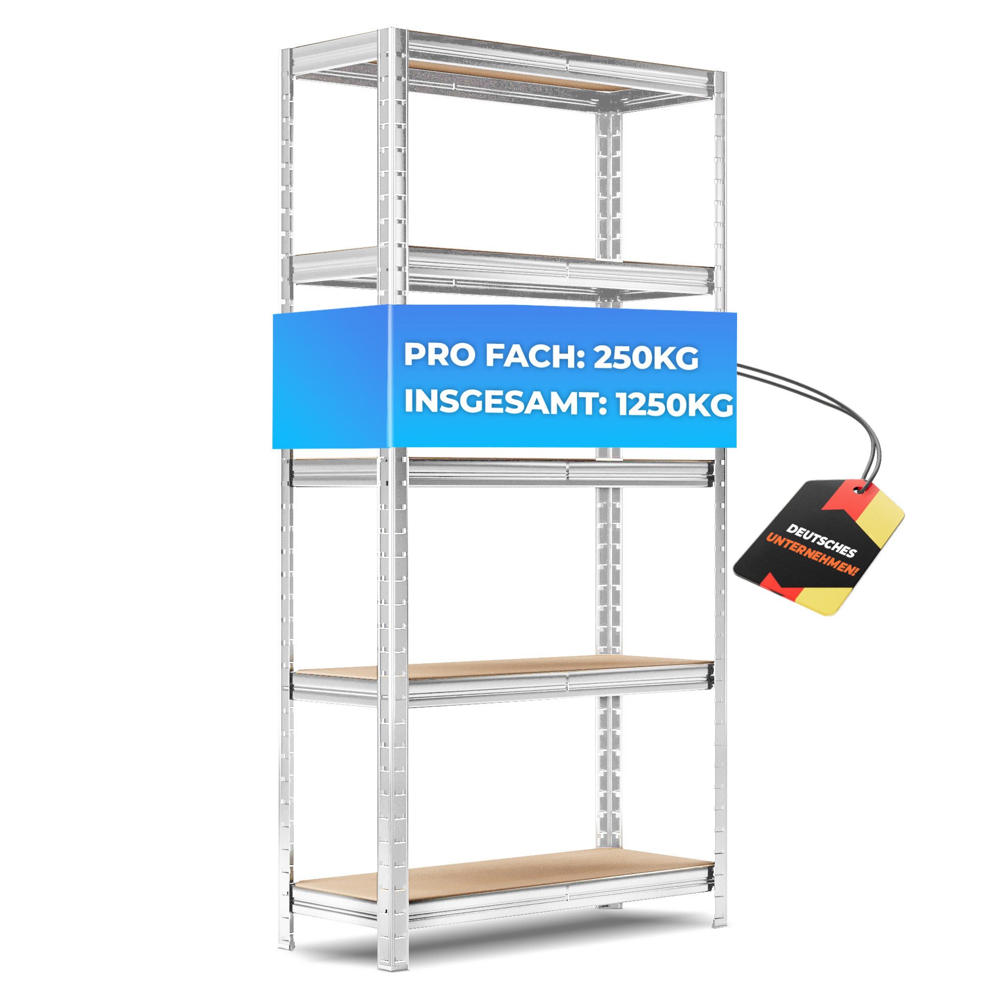 Hinweis Lieferumfang | 1x Schwerlastregal (bestehend aus: 5 Einlegeböden, jeweils mit 3 Mittelstreben pro Fach) inklusive Aufbauanleitung |