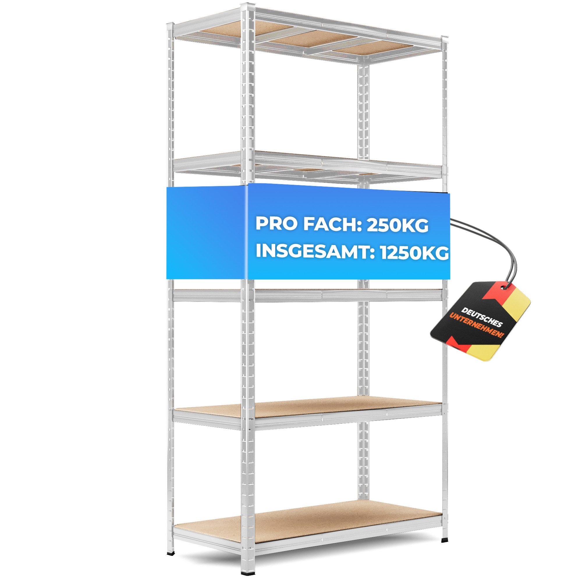 Hinweis Lieferumfang | 1x Schwerlastregal (bestehend aus 5 Einlegeböden, jeweils mit 3 Mittelstreben pro Fach) Inklusive Aufbauanleitung |