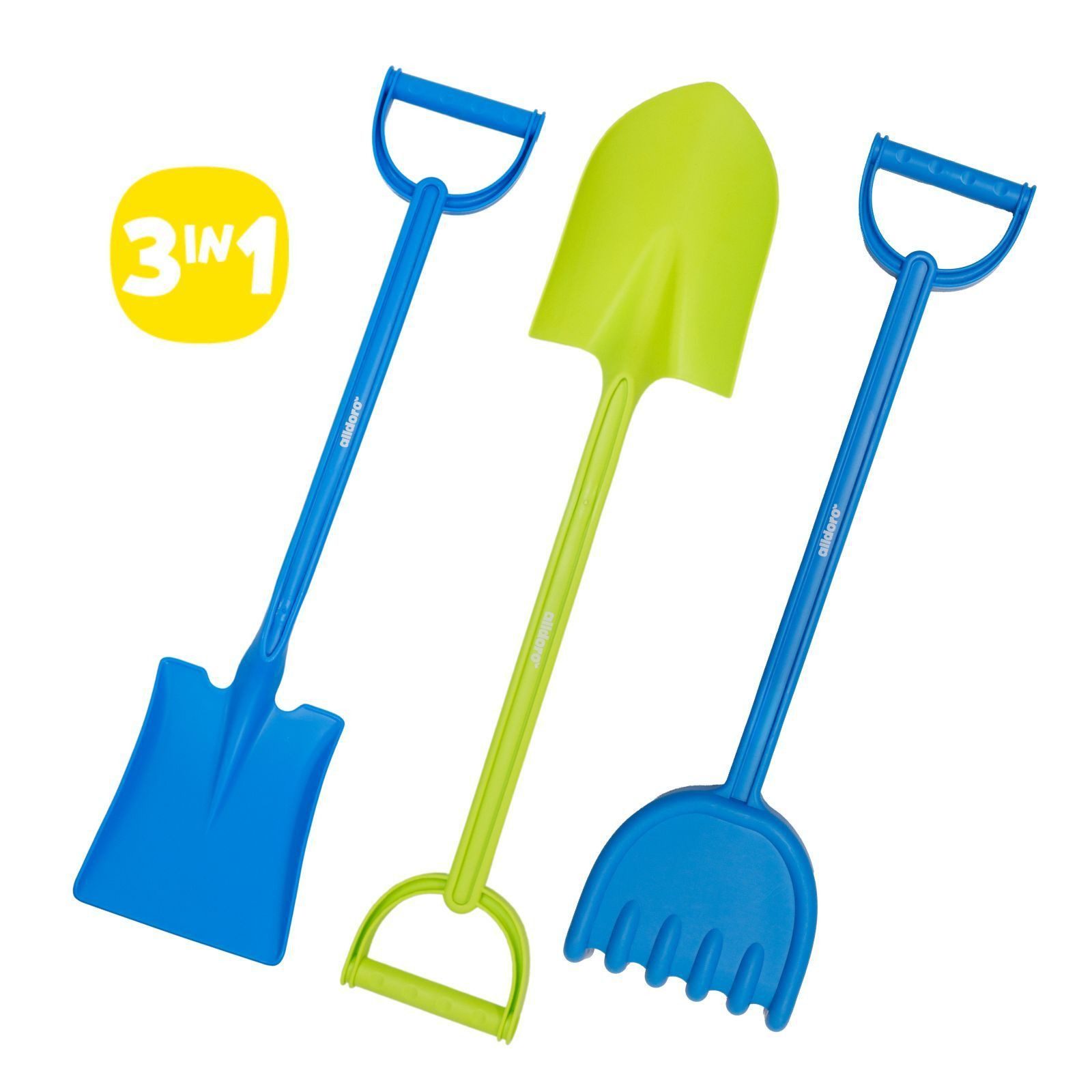 Mit diesem abwechslungsreichen Strandschaufel-Set sind der Fantasie keine Grenzen gesetzt! Die eckige Schaufel schaufelt präzise Burgengräben, die spitze Schaufel durchdringt mühelos festeren Sand und die Harke erschafft wunderschöne Muster oder glättet Sandburg-Wälle. Ob beeindruckende Sandburgen am Strand, aufregende Tunnel im Sandkasten oder enthusiastisches Mithelfen bei der Gartenarbeit - das Set unterstützt spielerisch Kreativität und motorische Fähigkeiten.