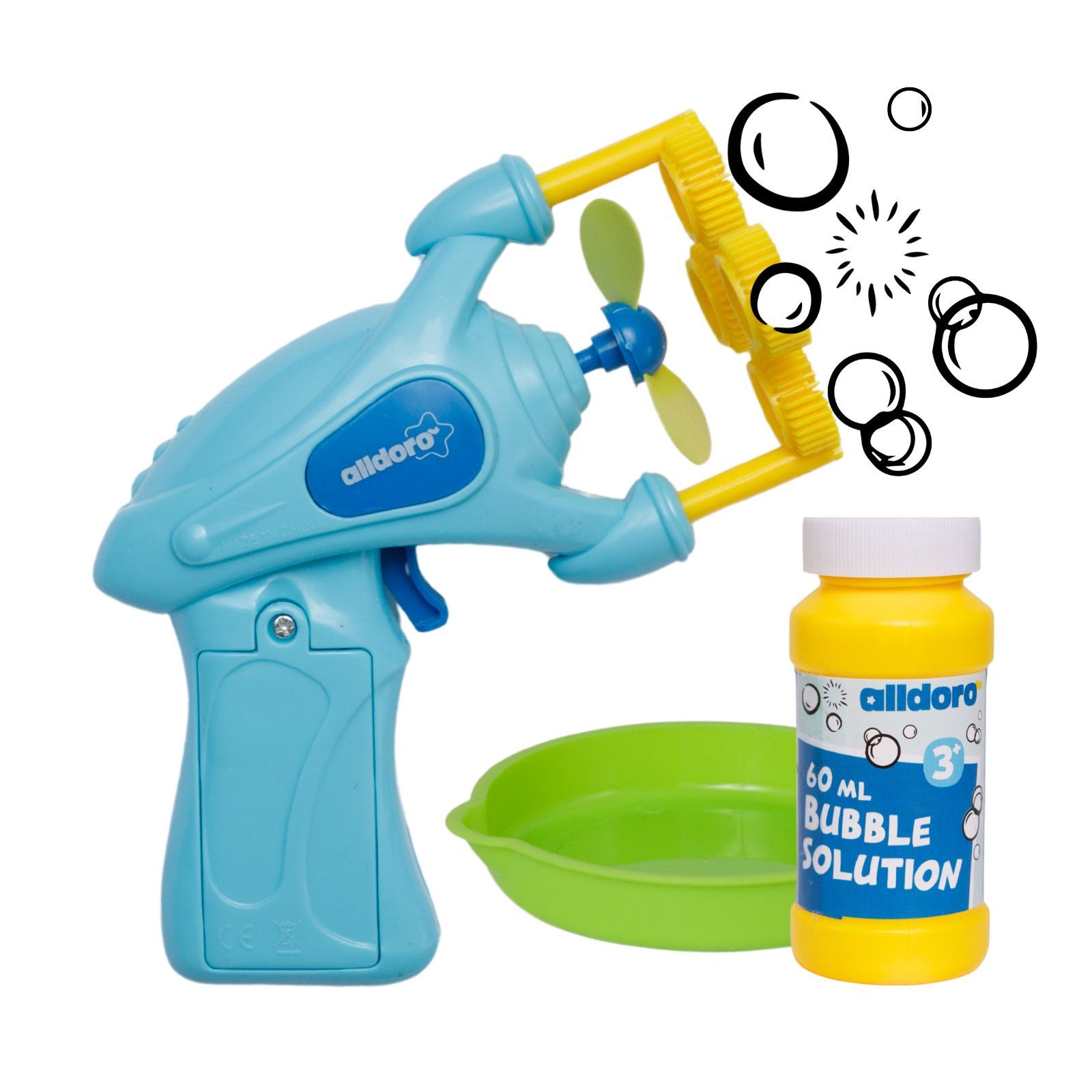 Unsere batteriebetriebene Seifenblasenpistole mit rotierendem Propeller macht jeden Outdoor-Tag zu einem sprudelnden Erlebnis! Auf Knopfdruck erzeugt diese kompakte Bubble-Pistole einen bezaubernden Strom aus glitzernden Seifenblasen, die durch die Luft schweben. Der innovative Propeller-Mechanismus sorgt für konstanten Blasenspaß und verzaubert kleine Abenteurer mit einem echten Seifenblasenregen.