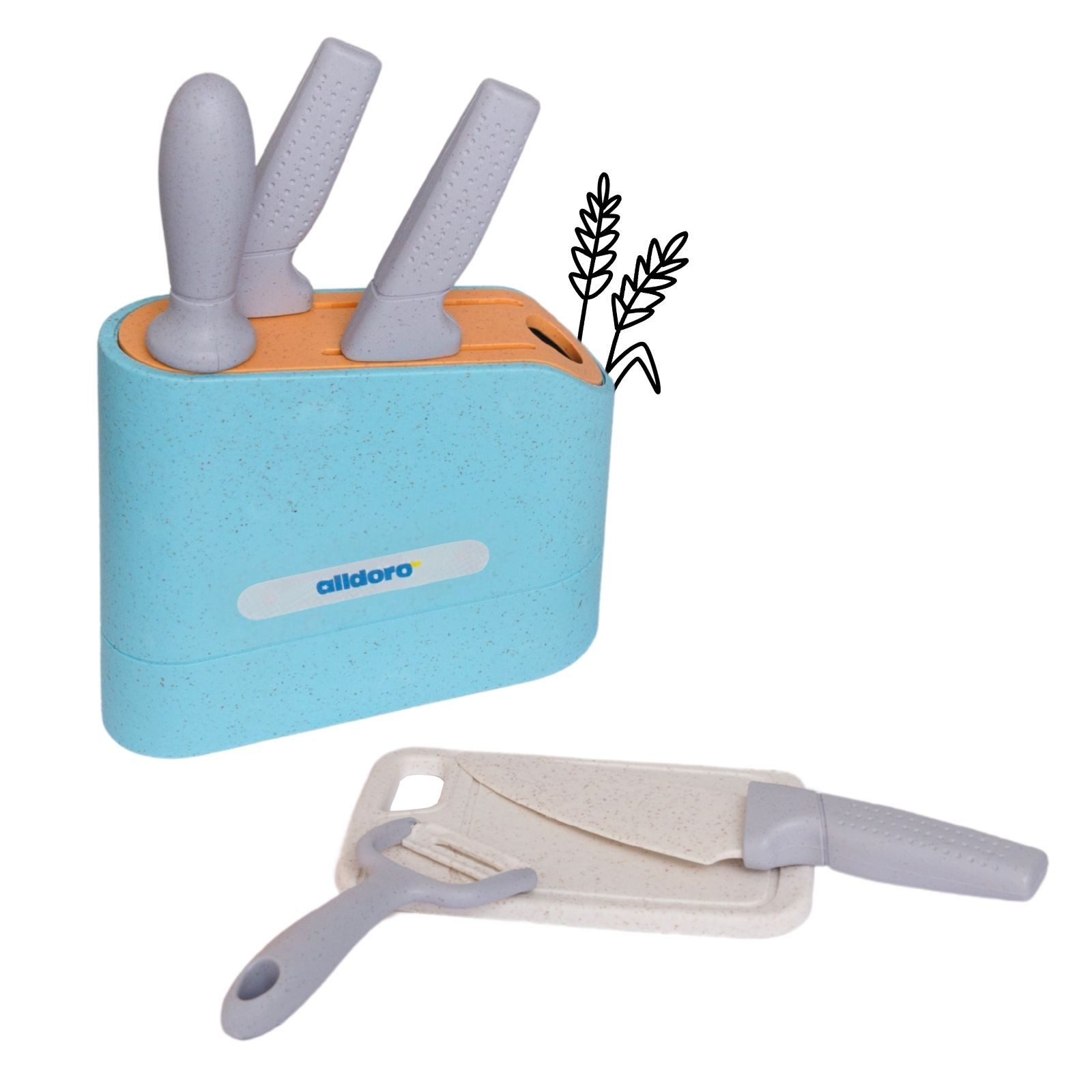 Das 7-teilige Küchenspielzeug aus innovativem Kunststoff-Weizenstroh-Gemisch verwandelt jede Kinderküche in eine professionelle Kochstation. Der komplette Messerblock mit Schneidebrett, drei verschiedenen Küchenmessern, Messerschärfer und Sparschäler ermöglicht kleinen Heldinnen und Helden die Zubereitung wunderbarer Fantasiegerichte. Das nachhaltige Kinder Messer Set bringt authentischen Kochspaß in jedes Kinderzimmer.