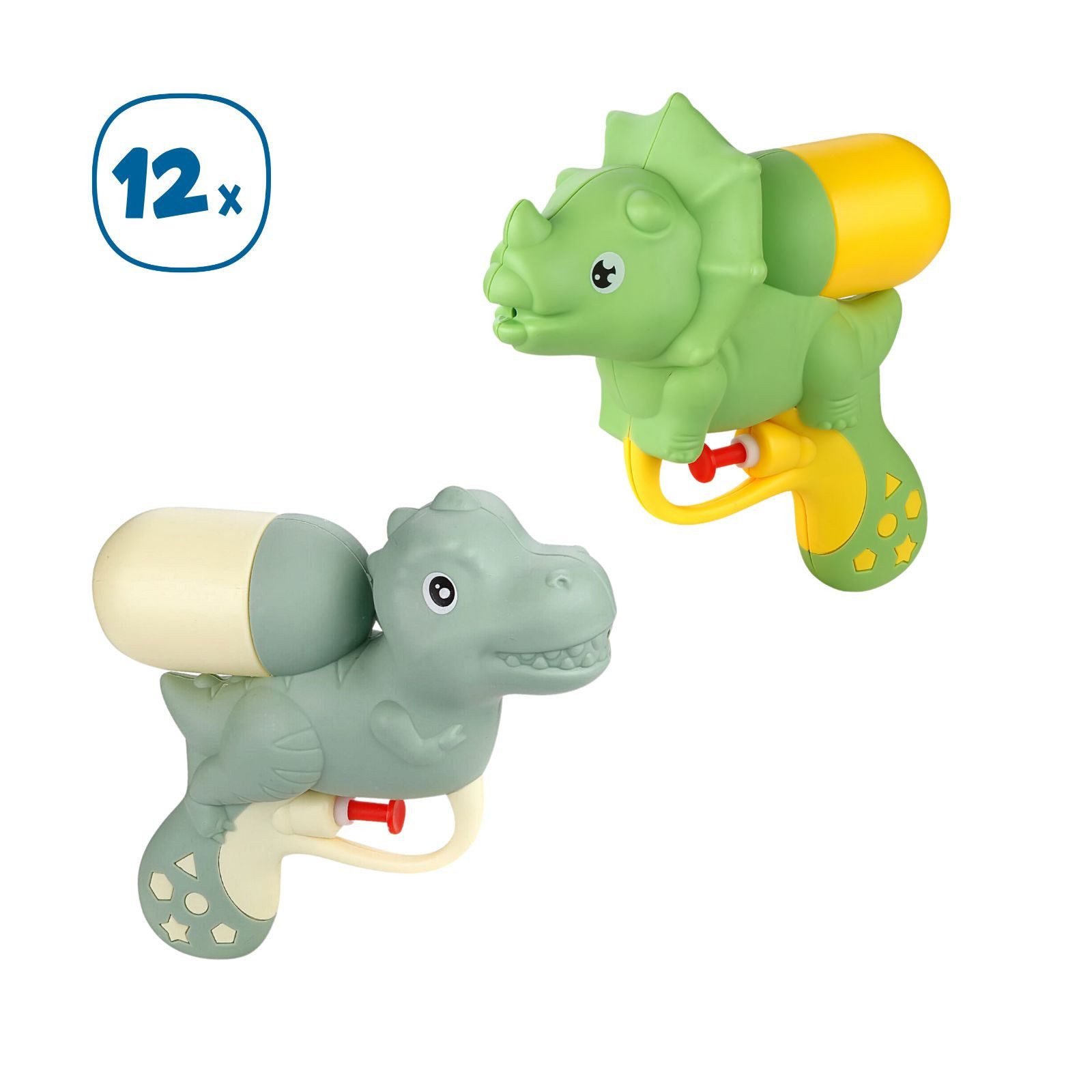Diese 12 kleinen Wasserpistolen im coolen Dino-Design verwandeln jeden heißen Sommertag in ein spritziges Abenteuer! Die Mini-Wasserpistolen kommen in zwei verschiedenen Dinosaurier-Looks daher: als mutiger Triceratops und als furchtloser Tyrannosaurus Rex. Mit 13 x 16 cm liegen sie perfekt in kleinen Kinderhänden und sorgen für ultimativen Wasserspaß.