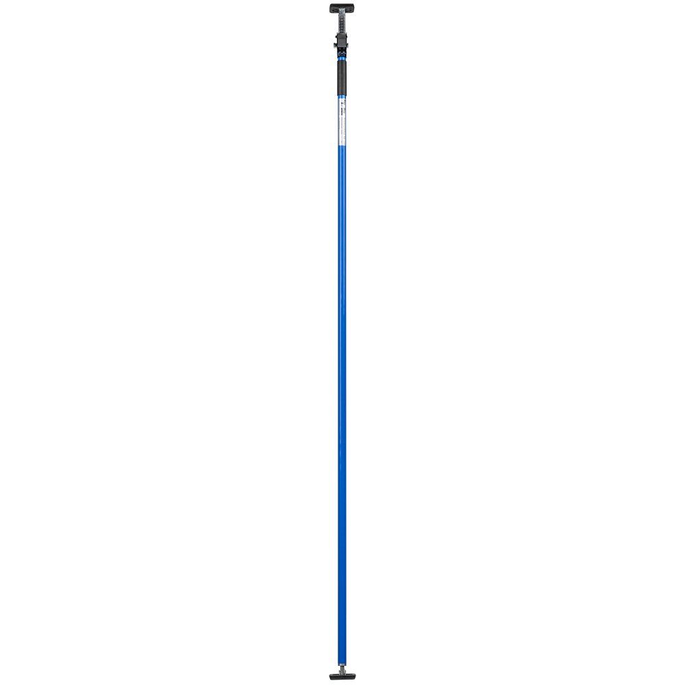 Die Montagestützen, auch Teleskopstangen genannt, werden senkrecht zwischen Fußboden und Decke, oder auch waagerecht zwischen 2 Wänden gespannt. Hierzu wird der silberne Teil der Stütze aus der blauen Stange möglichst weit zur groben Einstellung herausgezogen. Durch drehen der Stütze fahren die schwarzen Füße aus der Stütze heraus, die Stütze wird gespannt. Kleine Unebenheiten oder Schrägen gleichen die robusten Gelenke der Füße spielend aus. Separat erhältliche Filzgleiter zum Aufkleben auf die Füße können zum Schutz von empfindlichen Bodenbelägen oder Wänden und Decken verwendet werden.