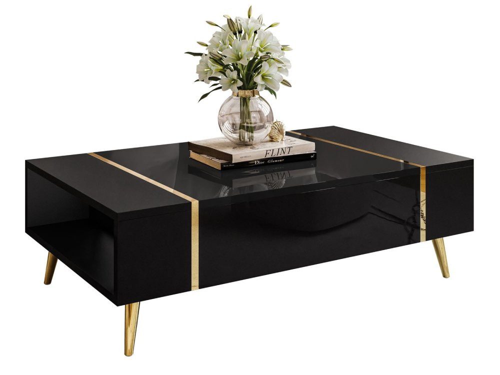 Weiße oder schwarze Hochglanzfronten und elegante Akzente in Goldchrom machen das Produkt zu einer gelungenen Basis für eine moderne Einrichtung. Die ausgefallenen Metallbeine verleihen dem gesamten Set einen besonderen Charme und sorgen für eine attraktive und unverwechselbare Dekoration in Ihrem Wohnzimmer.