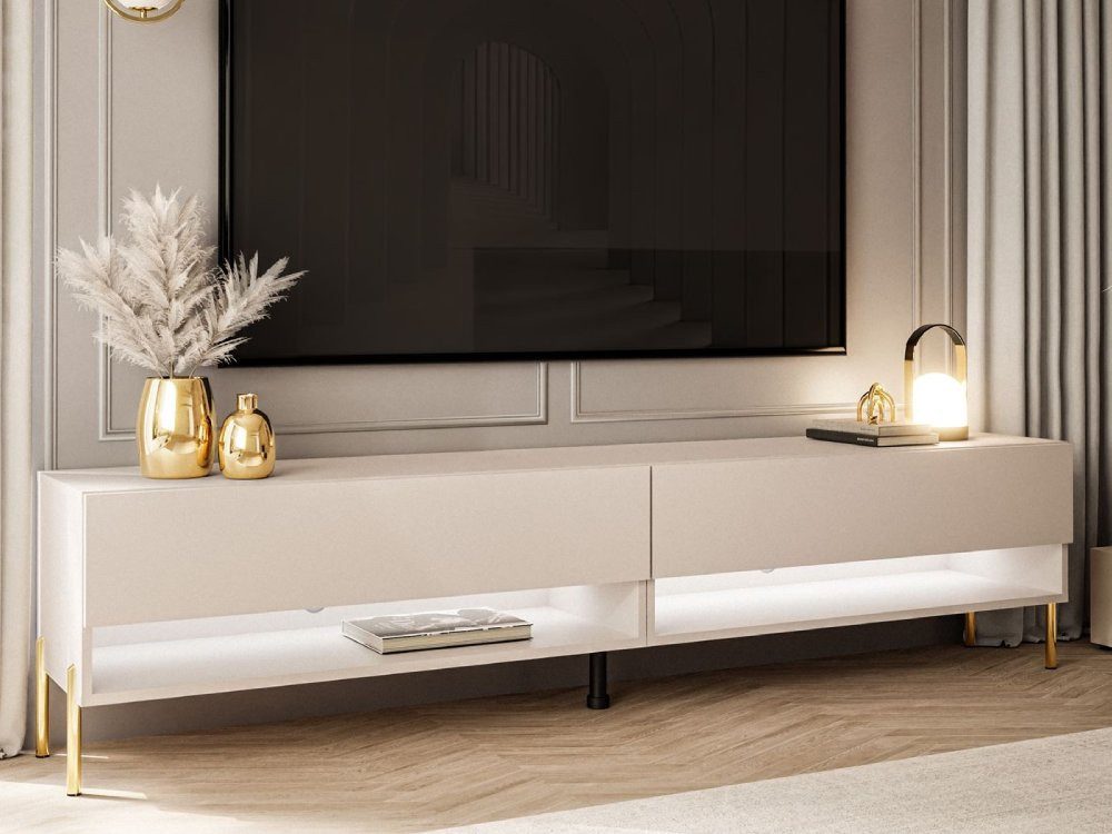 TV Lowboard ALISSE 180 cm – Modernes TV Board mit LED-Beleuchtung, Push-to-Open und Klappendämpfer