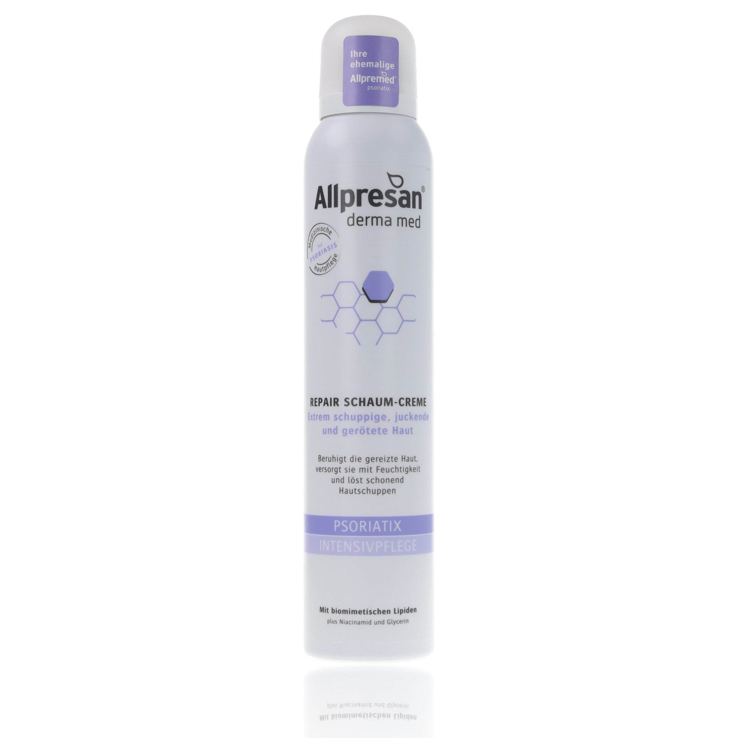 Zur therapiebegleitenden Pflege und Regeneration der Haut bei Psoriasis wurde die Allpresan Derma Med PSORIATIX INTENSIVPFLEGE entwickelt. Dank hohem Glycerinanteil werden Hautschuppen schonend abgelöst, ohne die gereizte Haut weiter zu strapazieren. Niacinamid beruhigt die juckende, gereizte Haut und Panthenol versorgt sie zusätzlich mit Feuchtigkeit. Biomimetische (hautverwandte) Lipide schließen zudem die Lücken im Lipidfilm der Haut und helfen so, weiterem Feuchtigkeitsverlust vorzubeugen.
