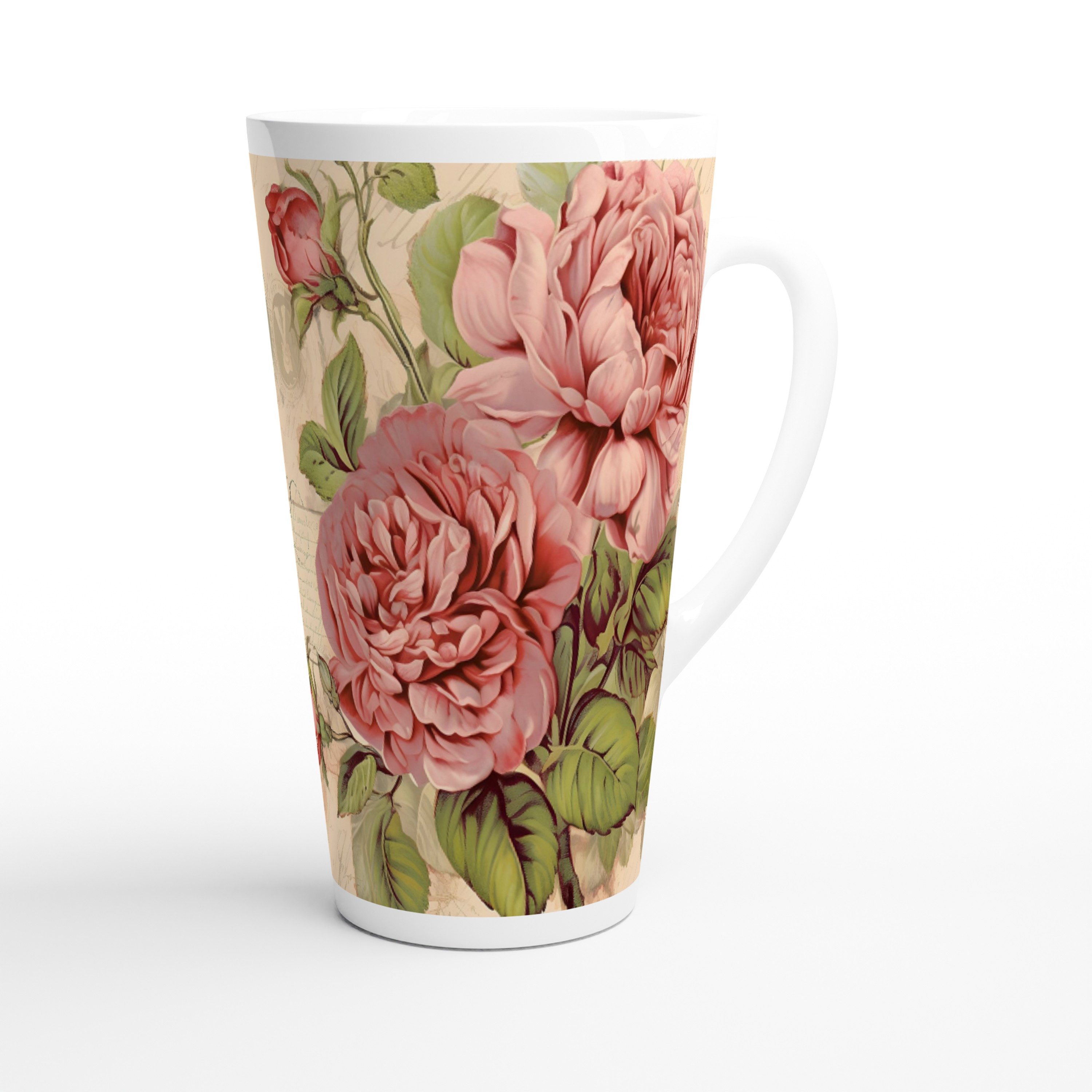 Der Becher präsentiert sich in einem strahlenden Weiß, das die darauf befindliche, nostalgische Zeichnung einer alten beschriebenen Postkarte wunderschön zur Geltung bringt. Ein sorgfältig ausgewählter Rosenzweig ziert die rechte Vorderseite der Tasse und verleiht ihr einen eleganten und zugleich heimeligen Charakter. Dank des Rundum-Drucks können Sie aus jedem Blickwinkel die liebevollen Details und die lebendige Darstellung genießen.