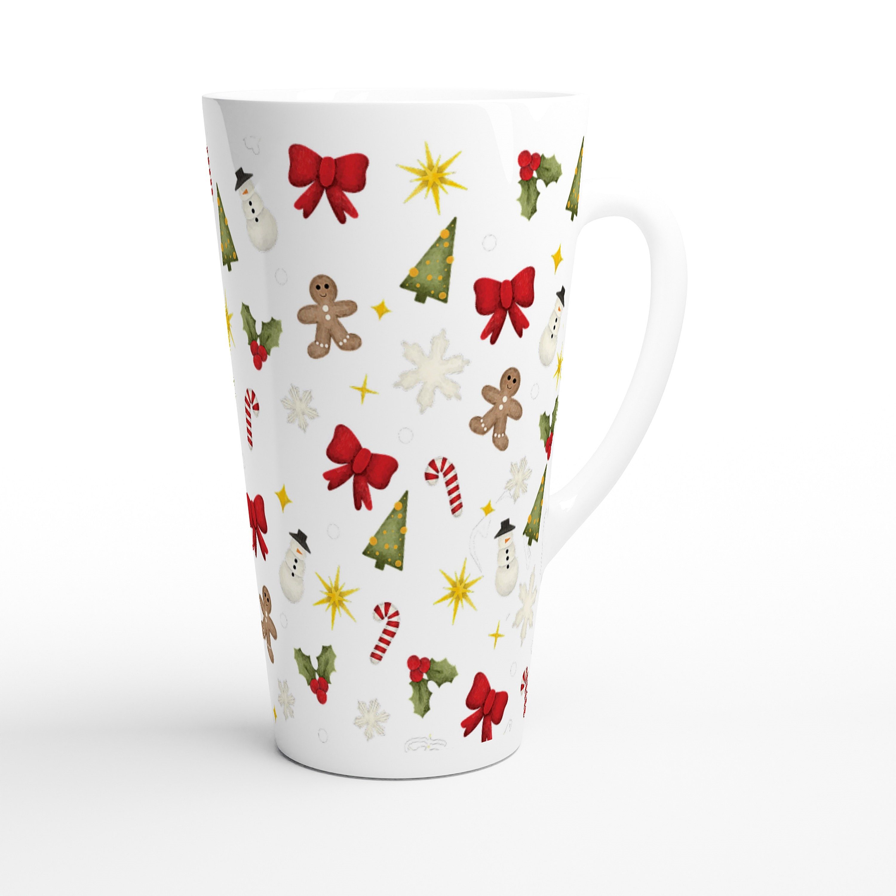 Das Design ist ein liebevoller Gruß an die schönste Zeit des Jahres: Rundum geschmückt mit kleinen, detailreichen Advents- und Weihnachtssymbolen wie Schleifen, Tannenbäumen, Sternen, Lebkuchenmännern, Schneeflocken und Schneemännern. Diese fröhlichen Motive versetzen Sie augenblicklich in festliche Stimmung und machen die Tasse zum perfekten Begleiter für gemütliche Winterabende oder als Geschenk, das von Herzen kommt.