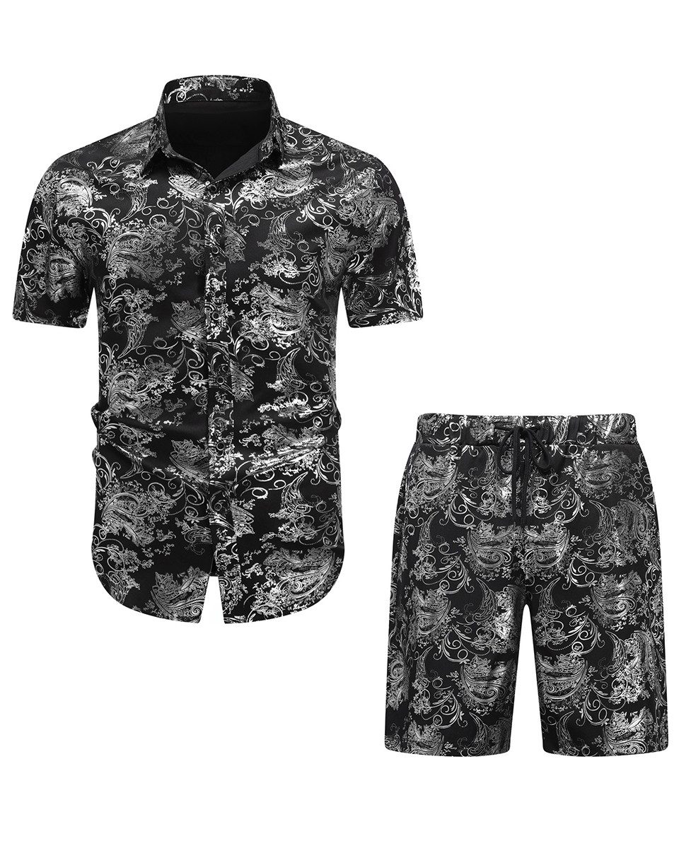 Tragen Sie auch an heißen Sommertagen einen coolen Kurzarmanzug! Dieser Herrenanzug, bestehend aus Kurzarmhemd und lässigen Shorts, vereint stilvolle Eleganz mit erfrischender Coolness. Das auffällige Jacquard-Muster verleiht dem klassischen Schnitt eine einzigartige Note und lässt Sie auf Partys auffallen und im Mittelpunkt der Aufmerksamkeit stehen. Der Zusatz von 2 % Elasthan verleiht diesem Anzug eine dezente Elastizität. Das Hemd hat einen lockeren, regulären Schnitt mit klassischem Kentkragen und unterstreicht die elegante und reife Ausstrahlung eines Mannes. Die Shorts haben einen verstellbaren Kordelzug in der Taille für maximalen Komfort. Das allover schimmernde Muster verwandelt diesen Anzug in ein stilvolles Kunstwerk. Kombinieren Sie ihn mit weißen Sneakers für einen frischen, urbanen Look. Ob Sie am Strand entspannen, die Stadt erkunden oder ein Barbecue genießen, dieser Anzug unterstreicht Ihre Individualität und Ihren einzigartigen Charme.