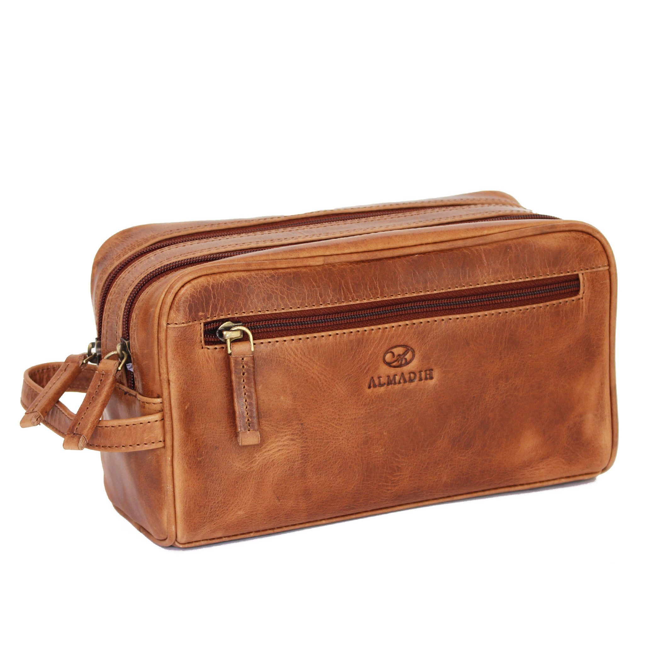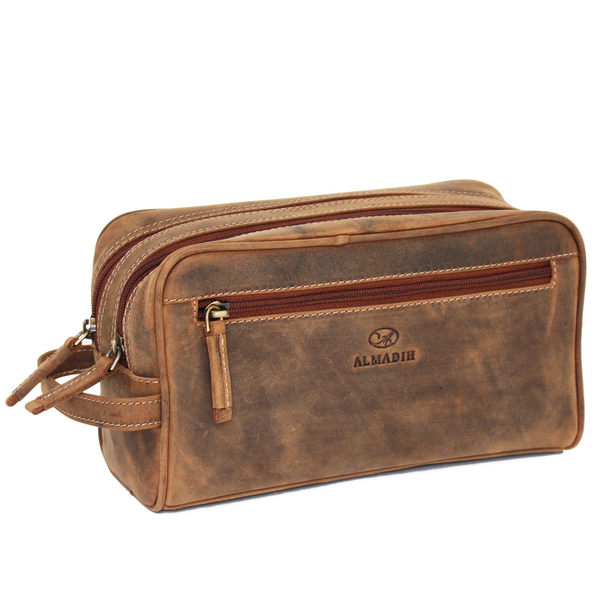 Der PIETRO Braun Vintage Kulturbeutel ist ein Meisterwerk der Handwerkskunst, gefertigt aus echtem Leder für den anspruchsvollen Reisenden. Sein luxuriöses Design und die erstklassige Qualität setzen neue Maßstäbe in Sachen Stil und Funktionalität. Die durchdachte Organisation im Inneren hält alle Ihre Pflegeprodukte übersichtlich und griffbereit, während das robuste Leder mit der Zeit eine einzigartige Patina entwickelt. Der PIETRO Braun Vintage ist nicht nur ein Kulturbeutel, sondern ein Statement für all jene, die auf ihren Reisen keine Kompromisse bei Eleganz und Qualität eingehen möchten. Mit seinen zwei Reißverschlussfächern bietet er umfangreichen Stauraum für alle Hygieneartikel, die Sie auf Reisen benötigen. Ob als klassische Reise-Waschtasche für den Herrn oder als praktisches Beautycase für die Damen – PIETRO ist die ideale Lösung, um Rasierset, Haarspray, Duschgel oder Makeup übersichtlich und sicher zu verstauen. Dank seiner ordentlichen Aufteilung findet jedes Utensil seinen Platz, sodass Sie immer bestens organisiert sind. Der Waschbeutel zeichnet sich durch einen stabilen Stand aus, kann aber auch mithilfe des praktischen Tragegriffs aufgehängt werden. Diese Flexibilität macht PIETRO zu einem unverzichtbaren Begleiter für jeden Urlaub, Kurztrip oder jede Dienstreise. PIETRO: Die Vielseitige Leder Kulturtasche für stilvolle Reisen Details: Modell: ALMADIH Kulturtasche PIETRO Farbe: Braun Vintage Material: Premium-Leder Verschluss: Reißverschluss Außenmaße ca.: 24 x 14 x 9 cm (Длина x Höhe x Tiefe)