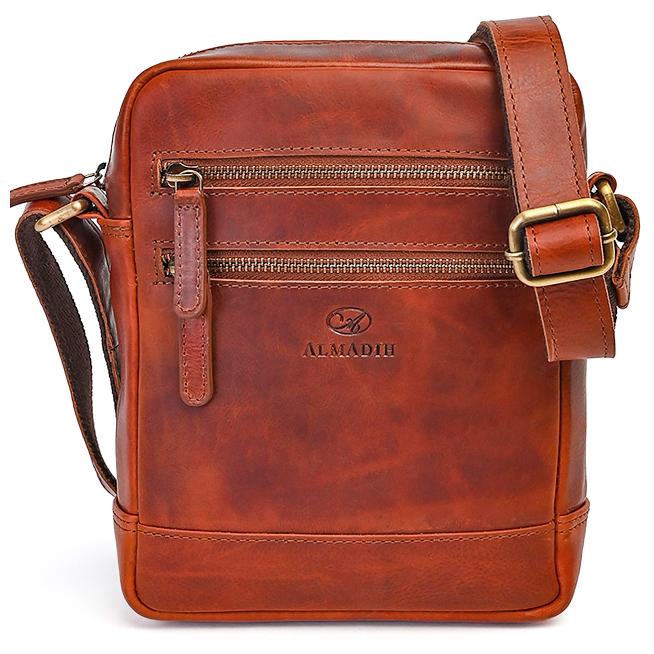 Mit der eleganten Ledertasche von ALMADIH sind Sie stets praktisch und stilvoll unterwegs. Die ALMADIH Umhängetasche bietet genügend Platz für all Ihre Essentials und besticht durch ihre durchdachte Innenaufteilung. Das hochwertige Leder und die präzise Verarbeitung machen diese Tasche nicht nur zu einem funktionalen Begleiter, sondern auch zu einem modischen Statement. Perfekt für den täglichen Gebrauch, Reisen oder besondere Anlässe – diese Tasche wird Ihnen viele Jahre lang Freude bereiten. Die ALMADIH Umhängetasche ist die ideale Lösung für den modernen Mann und die stilbewusste Frau. Diese Vielseitigkeit macht sie zu einem unverzichtbaren Accessoire für jede Gelegenheit. Details: Modell: ALMADIH Umhängetasche Farbe: Braun Vintage Material: Premium-Leder Verschluss: Reißverschluss Außenmaße ca.: 18x24x7 cm (B x H x T) Vorderansicht: Praktische Reißverschlussfächer für schnellen Zugriff auf kleinere Gegenstände 1 großes Fach mit Reißverschluss für weitere Utensilien Innenaufteilung: Innen: 1 Hauptfach mit Reißverschluss: Fach 1: Für Geldbörse, Handy und weitere persönliche Dinge Fach 2: Reißverschluss-Innenfach für kleinere Gegenstände Rückansicht: 1 Reißverschlussfach für sicheren Stauraum