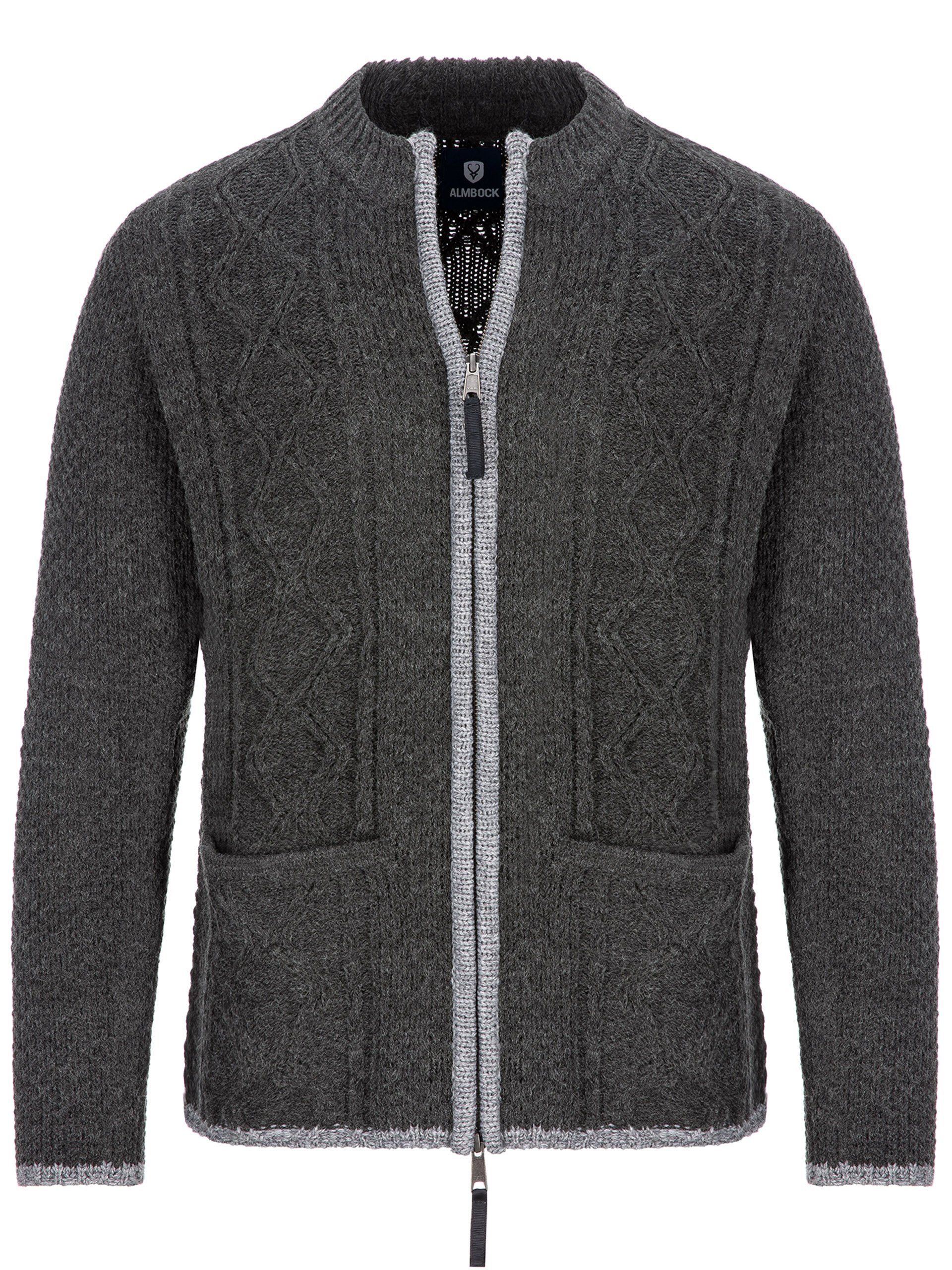 Sind Sie auf der Suche nach einer exzellent verarbeiteten sowie urig rustikalen Herren Strickjacke, die sowohl perfekt zu jeder Gelegenheit im Alltag als auch zu festlichen Anlässen (z.B. zum Volksfest in Verbindung zur Tracht) kombinierbar ist? Dann ist diese Strickjacke mit Reißverschluss in schönem anthrazit eine gute Wahl! Die Herren Strickjacke mit Reißverschluss der Marke ALMBOCK besticht durch ihre gesamtheitliche hochwertige Verarbeitung. Sie ist mit einem hochwertigen zwei-Wege-Reißverschluss der Marke YKK (Marktführer im Reißverschlusssegment) verschließbar. Die wunderschöne urig-bayrische Trachten Strickhack aus Wollstrick kommt im klassischen Zopf- und Rautenmuster und ist somit urig, rustikal und traditionell, ohne dabei altbacken zu wirken. Ein besonderes Highlight sind die Ellbogen Patchen an den Armen sowie die zwei Einschubtaschen auf der Frontseite zum Verstauen von Kleinigkeiten. Das Material besteht aus hochwertiger Wolle mit Polyacryl Anteil, der für eine perfekte Passform sorgt. Kein Jucken und Kratzen!