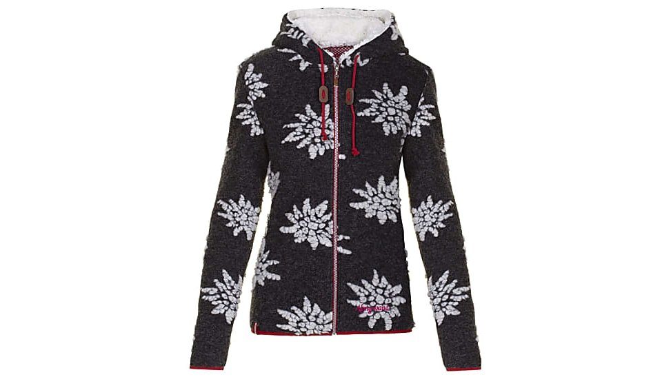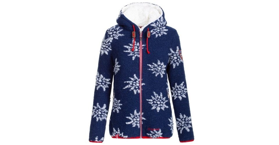Kuschel-Look für kalte Tage: die Wildalpe Strickfleece-Jacke von Almgwand trägt sich so flauschig weich, wie sie aussieht. Der hohe Wollanteil sorgt für großen Wärmerückhalt. In der Kapuze schützt das weiche Teddyfutter vor Wind und Kälte. In Sachen Design setzen die stilisierten Edelweißblüten tolle optische Akzente. Zwei Reißverschlusstaschen mit kariertem Futter, elastische Saumkanten und Hirschhornanhänger an den Zippern sind weitere hochwertige Details. Made in Europe gewährleistet europäische Standards bei der Produktion – sowohl was Umwelt- und Эко-товарыsstandards als auch Arbeitsbedingungen anbelangt. Enthält nicht textile Teile tierischen Ursprungs.