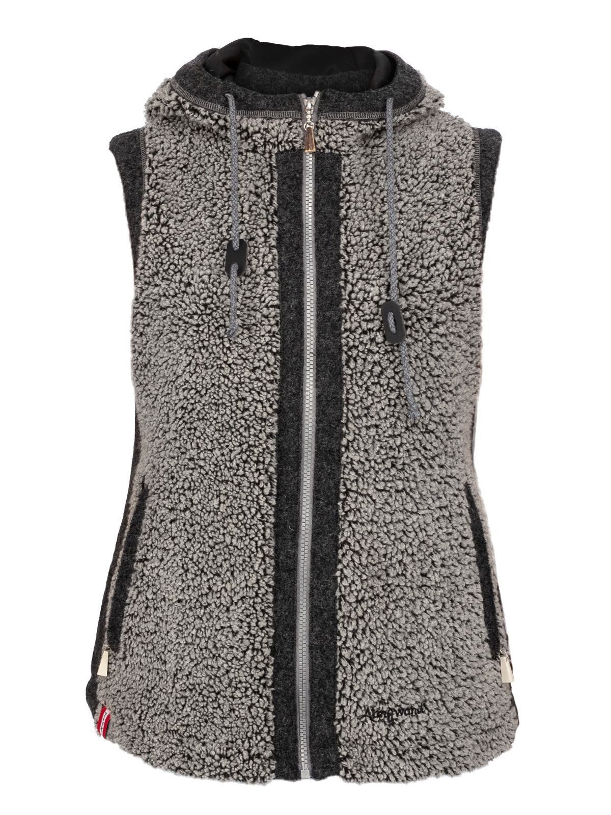 Die Hirschkopf Plüschweste mit Kapuze von Almgwand ist durch den hohen Wollanteil ein hochwertiger Allrounder für die kalten Tage. Aus hochwertigem Plüsch gearbeitet und mit Kontrast aus Walk. Die Kapuze lässt sich mit einem Kordelzug in der Weite verstellen. In den beiden seitlichen Reißverschlusstaschen sind Wertsachen sicher aufbewahrt. Die echten Hirschhornanhänger am Frontreißverschluss und an den Taschen unterstreichen den typischen Almgwandlook. Made in Europe gewährleistet europäische Standards bei der Produktion – sowohl was Umwelt- und Эко-товарыsstandards als auch Arbeitsbedingungen anbelangt. Enthält nicht textile Teile tierischen Ursprungs.