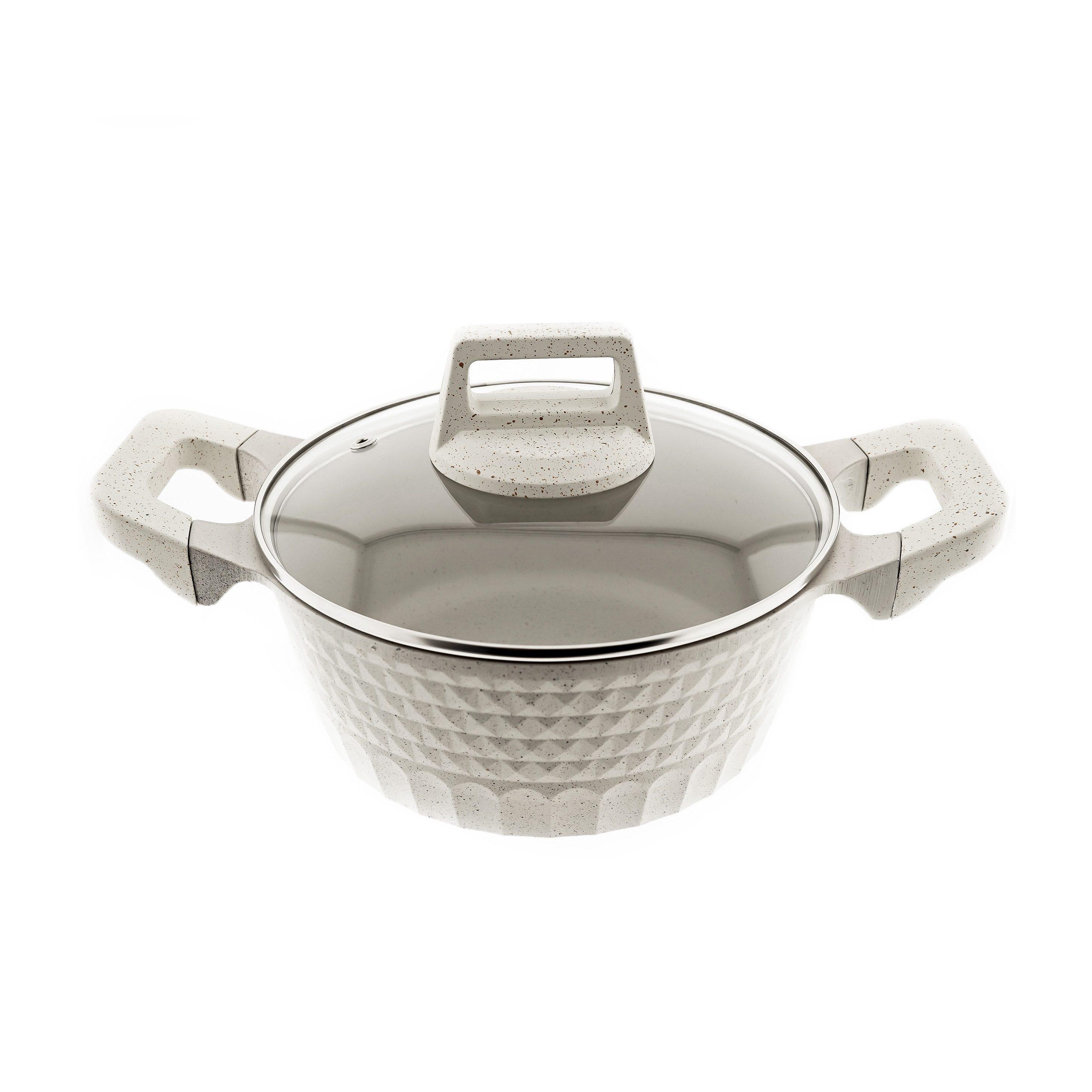 Die Antihaftbeschichtung sorgt dafür, dass Ihre Speisen nicht anhaften und erleichtert die Reinigung nach dem Kochen erheblich. Der mitgelieferte Glasdeckel ermöglicht es Ihnen, den Kochvorgang zu überwachen, ohne den Deckel abnehmen zu müssen, und hält gleichzeitig die Hitze und Feuchtigkeit im Inneren des Topfes.
