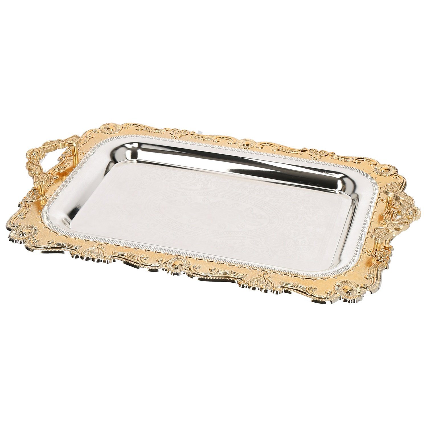 2-Tlg. Silber Metalltablett-Set Serviertabletts aus Edelstahl