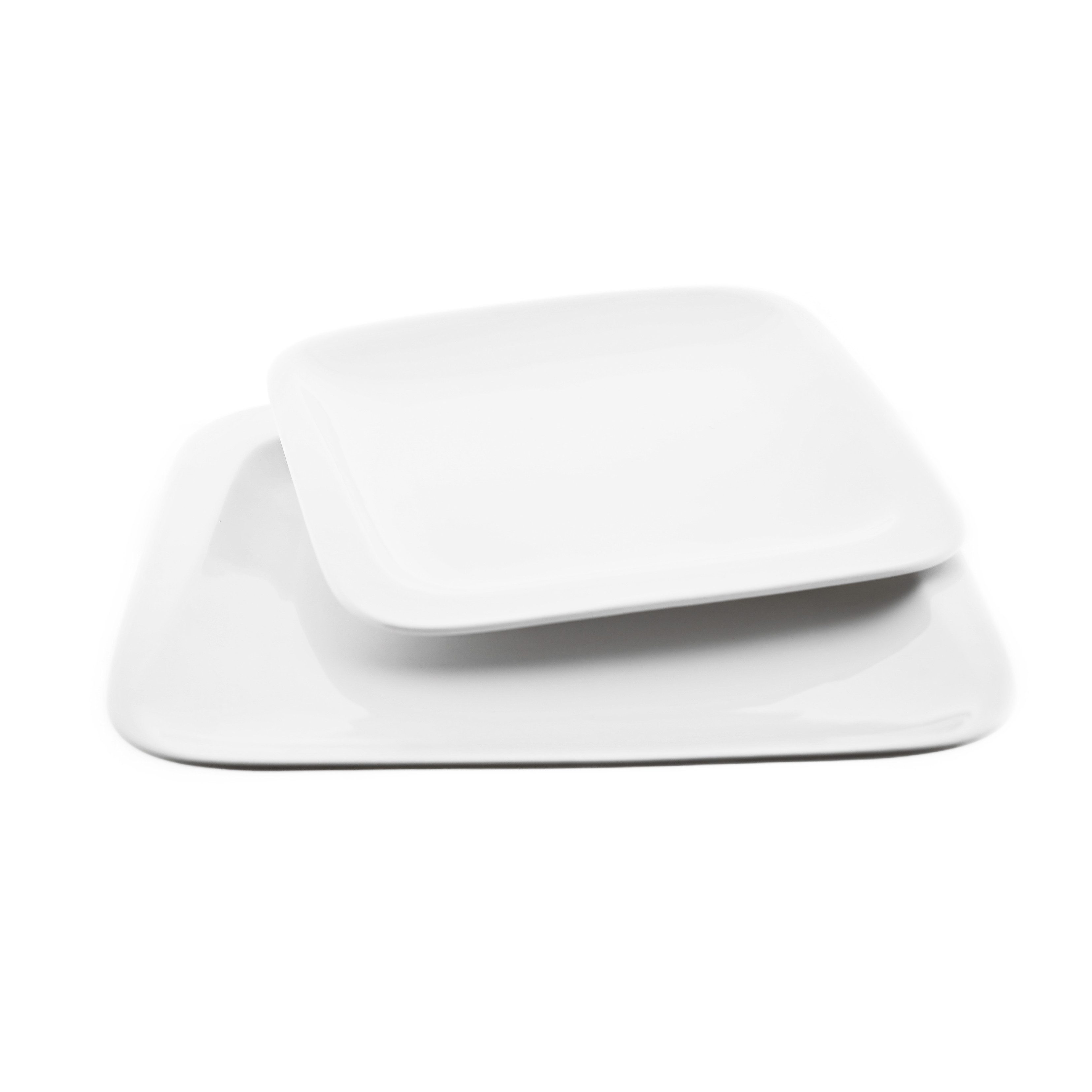 Die Servierteller verfügen über eine quadratsiche Form mit abgerundeten Ecken, das sich nahtlos in jede Tischdekoration einfügt und einen Hauch von Eleganz verleiht. Die neutrale weiße Farbe der Servierteller passt zu jedem Tischdekor und lässt Ihre Speisen besonders hervorstechen.