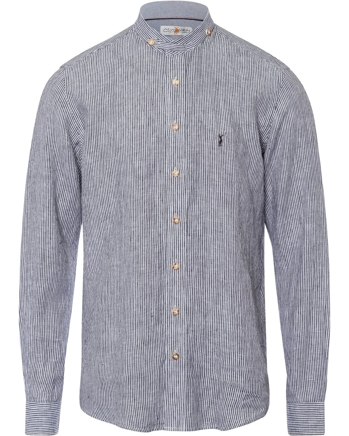 Das Slim Fit Herren Trachtenhemd von Almsach vereint traditionelles Design mit modernem Schnitt und bietet einen stilvollen Look für besondere Anlässe. Hergestellt aus reinem Leinen, sorgt das Hemd für ein angenehmes Tragegefühl und optimale Luftzirkulation, ideal für warme Tage. Die feinen Streifen verleihen dem Hemd eine elegante Note, während der Stehkragen mit geknöpftem Riegel das klassische Trachten-Design unterstreicht. Besondere Details wie der Logostick auf Brusthöhe und die Knöpfe in Hirschhornoptik setzen attraktive Akzente und machen das Hemd zu einem echten Blickfang. Die 1-Knopf-Manschette mit Verstellknopf ermöglicht eine individuelle Anpassung und sorgt für eine perfekte Passform. Dieses Hemd ist nicht nur ein modisches Highlight, sondern auch ein zeitloses Kleidungsstück, das sich vielseitig kombinieren lässt. Ob bei festlichen Anlässen, im Biergarten oder bei einem Ausflug in die Natur – das Slim Fit Herren Trachtenhemd von Almsach ist die ideale Wahl für stilbewusste Herren, die Wert auf Qualität und Tradition legen. Mit diesem Hemd wird jeder Auftritt zum besonderen Erlebnis, das sowohl Komfort als auch Eleganz vereint. Oberstoff: 100% Leinen